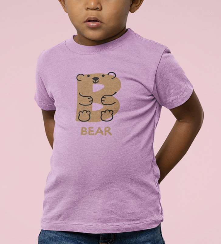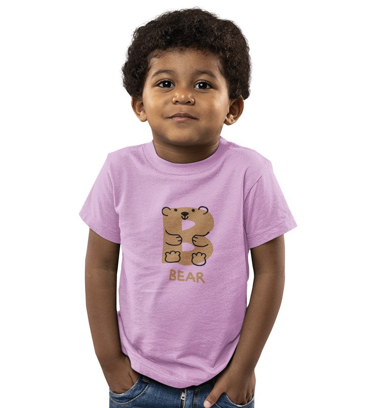 Beary bear, Printed Cotton Tshirt (Purple) for Boys