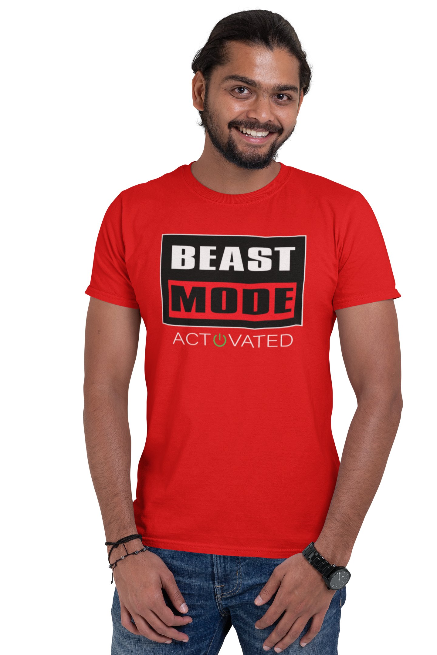 Beast Mode Activated, (BG Orange, White and Black), Round Neck Gym Tshirt (Red Tshirt) - Clothes for Gym Lovers - Foremost Gifting Material for Your Friends and Close Ones