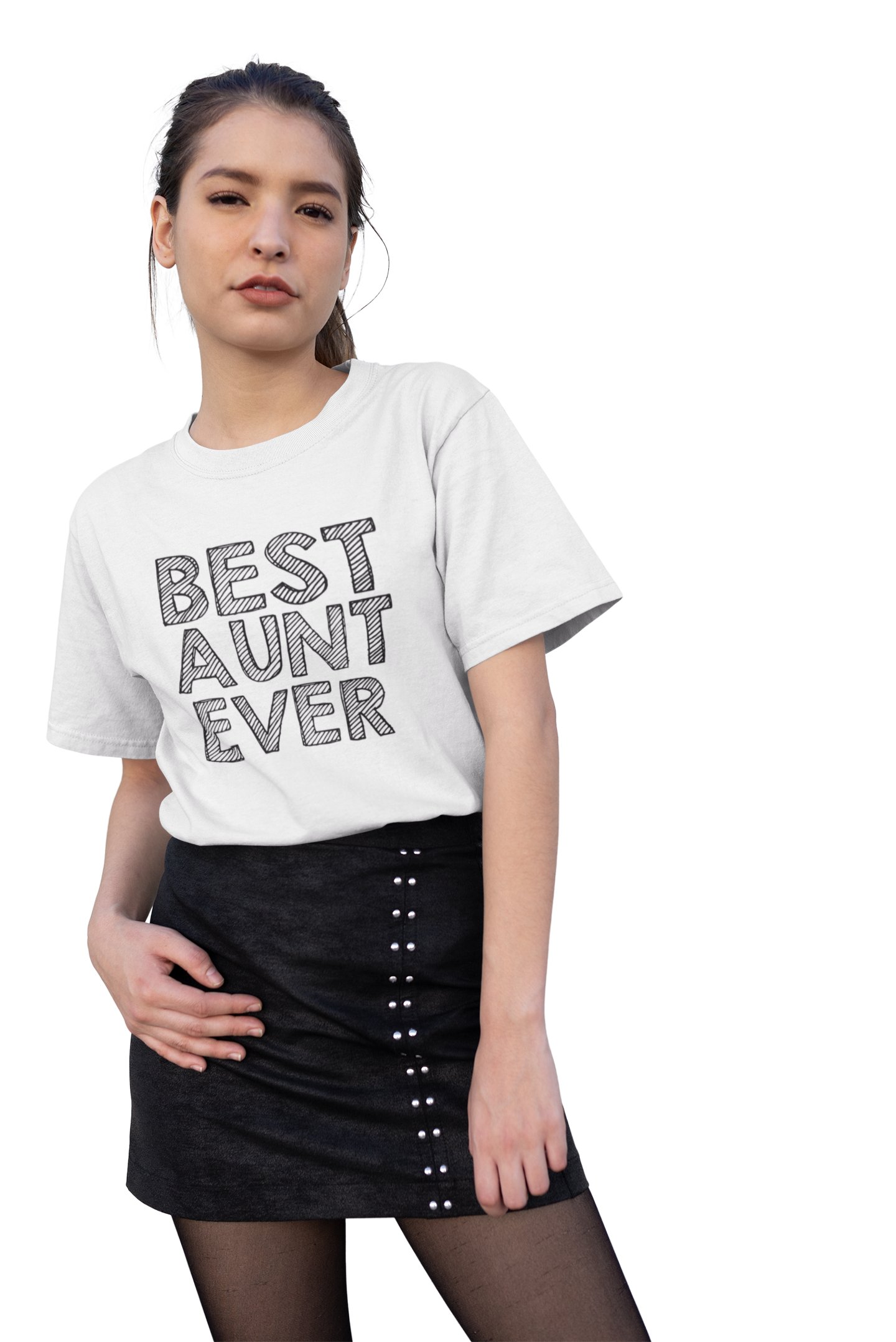 Best aunt ever-printed family themed cotton blended half-sleeve t-shirts made for women (white)