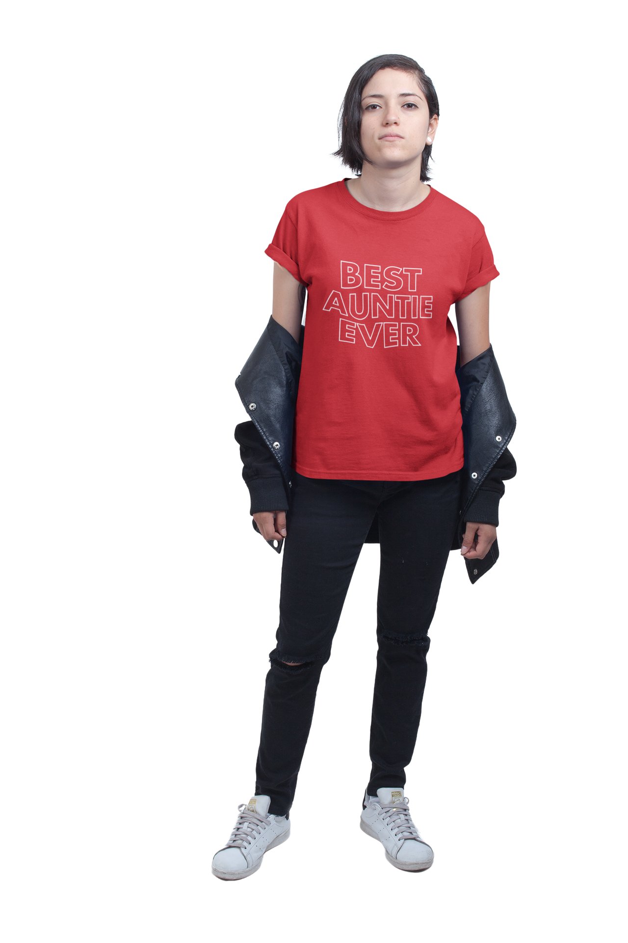 Best auntie -printed family themed cotton blended half-sleeve t-shirts made for women (red)