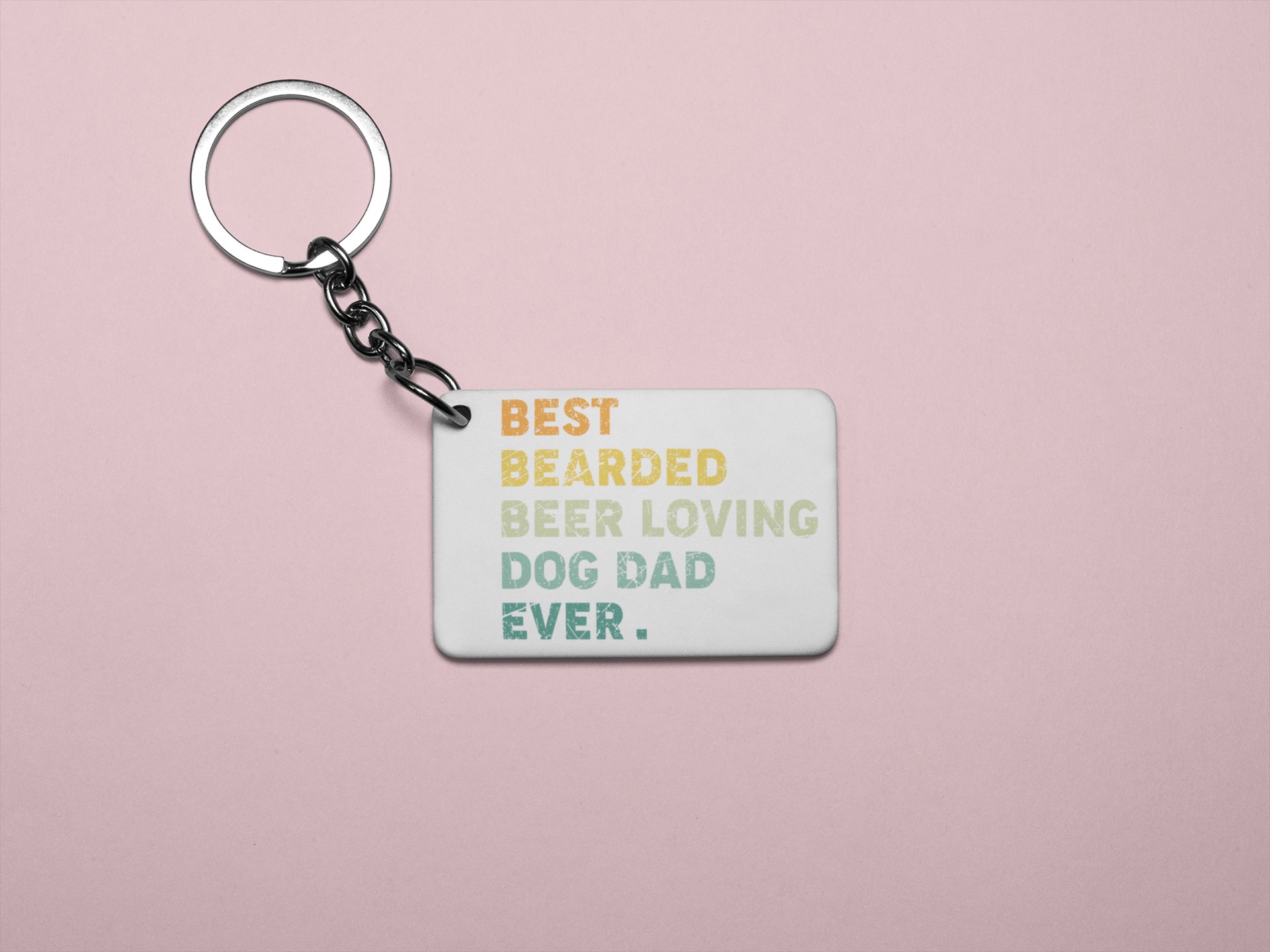 Best bearded beer loving dog dad -printed Keychains for pet lovers(Pack of 2)