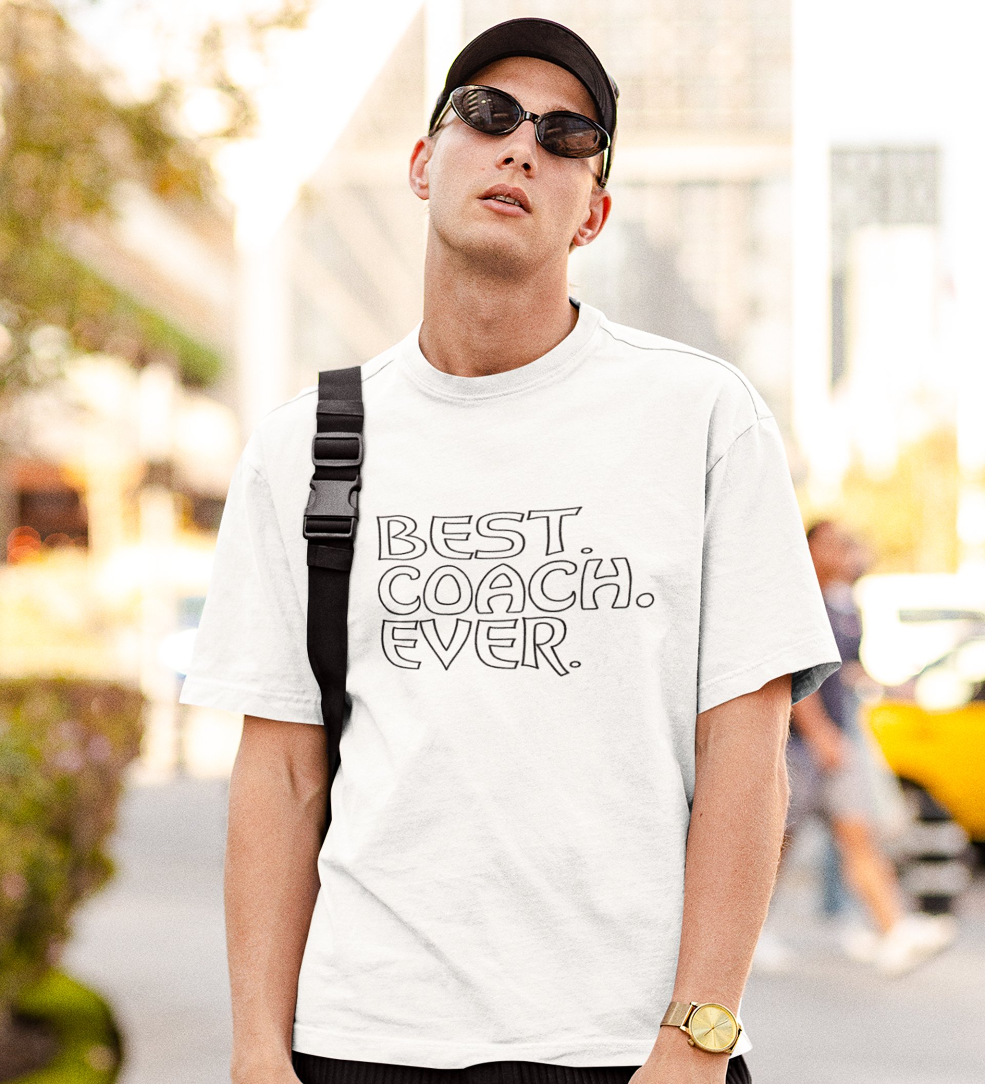 Finest Coach White Round Neck Cotton Half Sleeved Men's T-Shirt with Printed Graphics