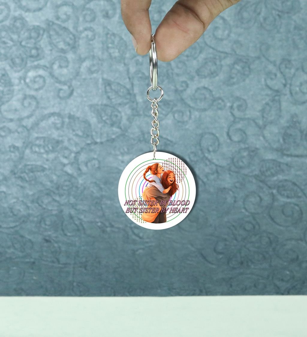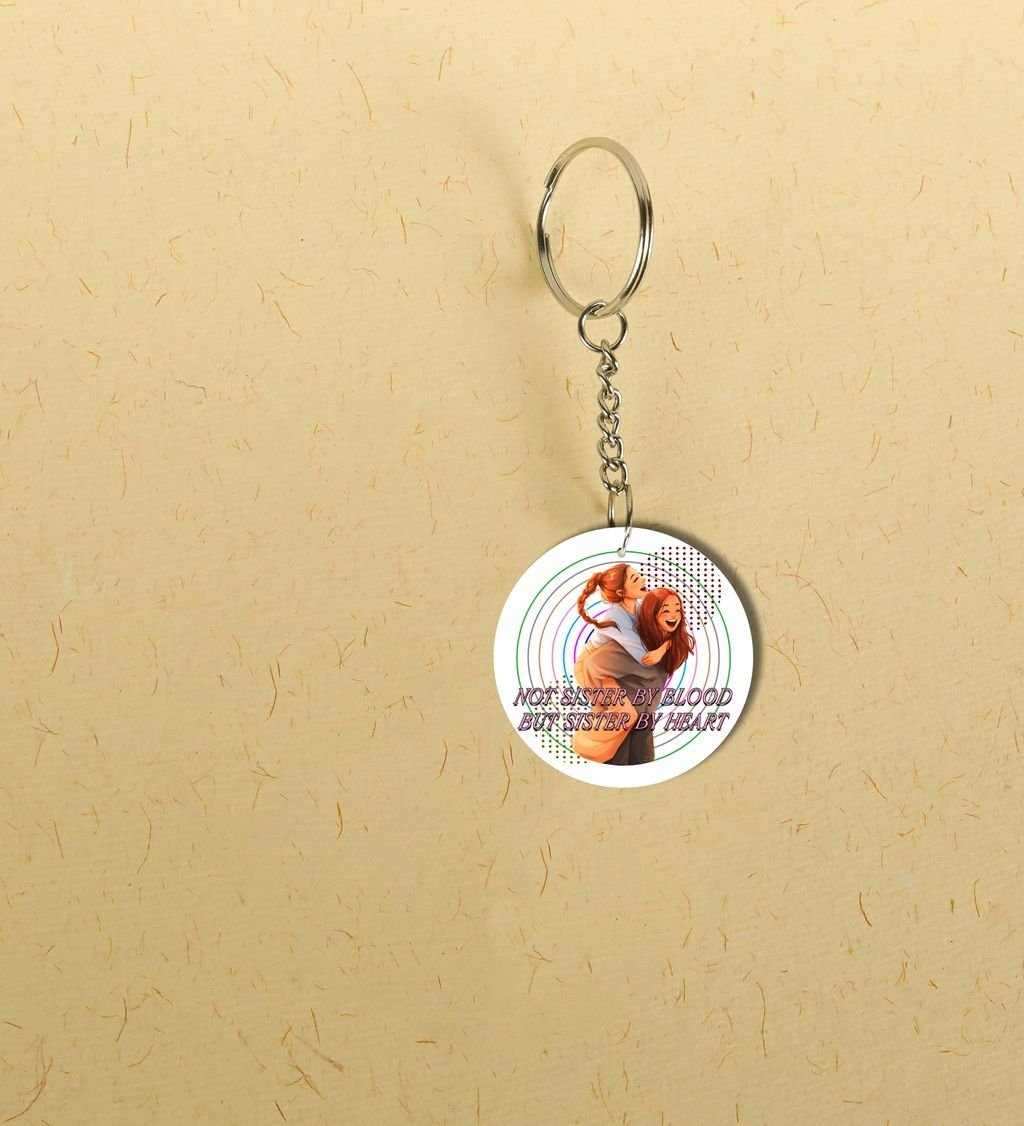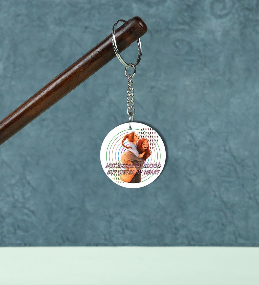 Best Friends Like Sisters Forever Quote: Printed Round Keychain Pack of 2
