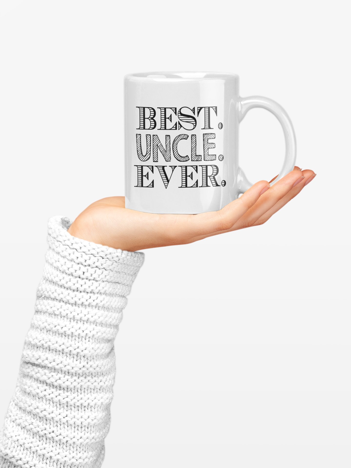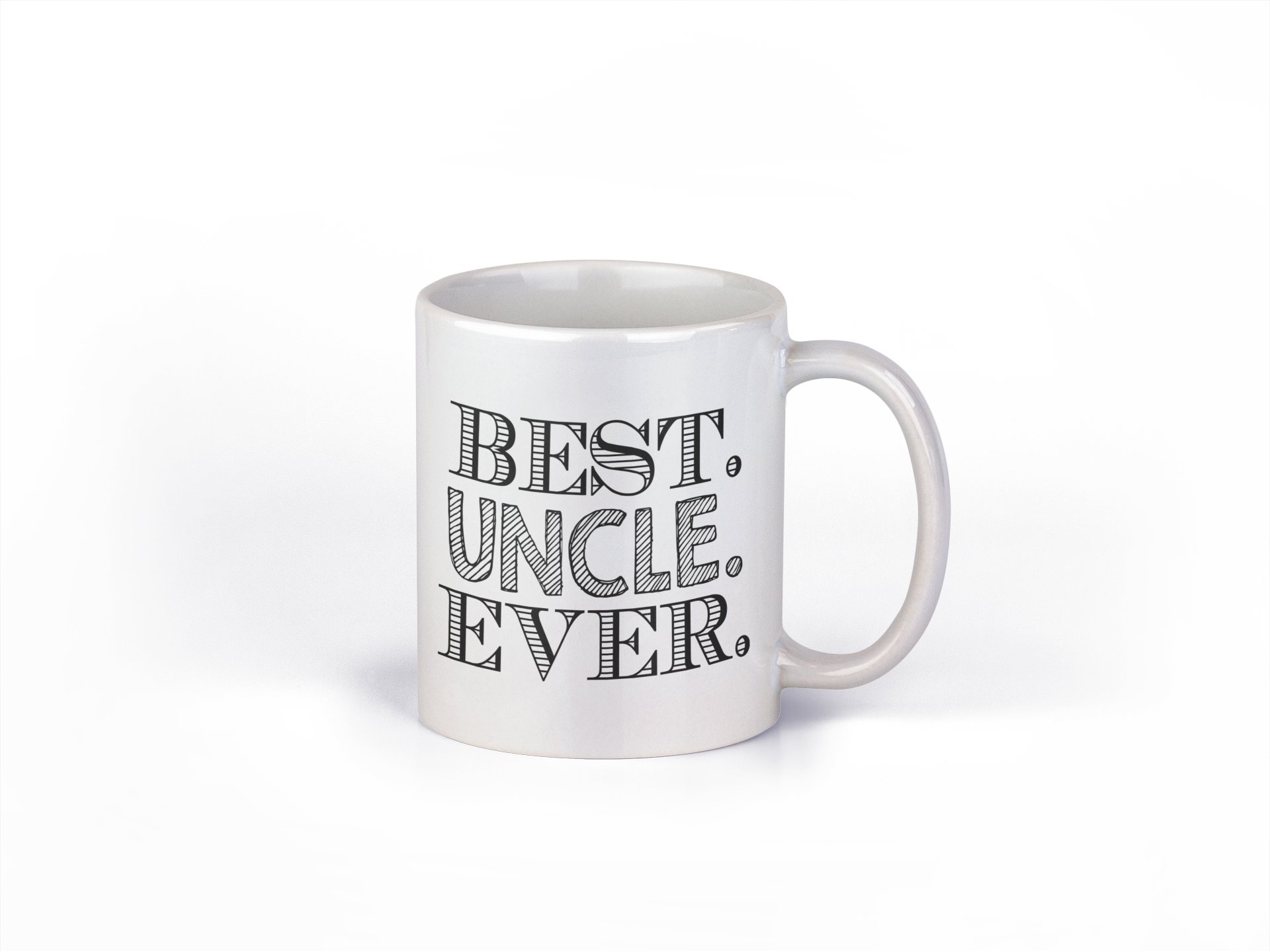 Best uncle Ever Black text- family themed printed ceramic white coffee and tea mugs/ cups