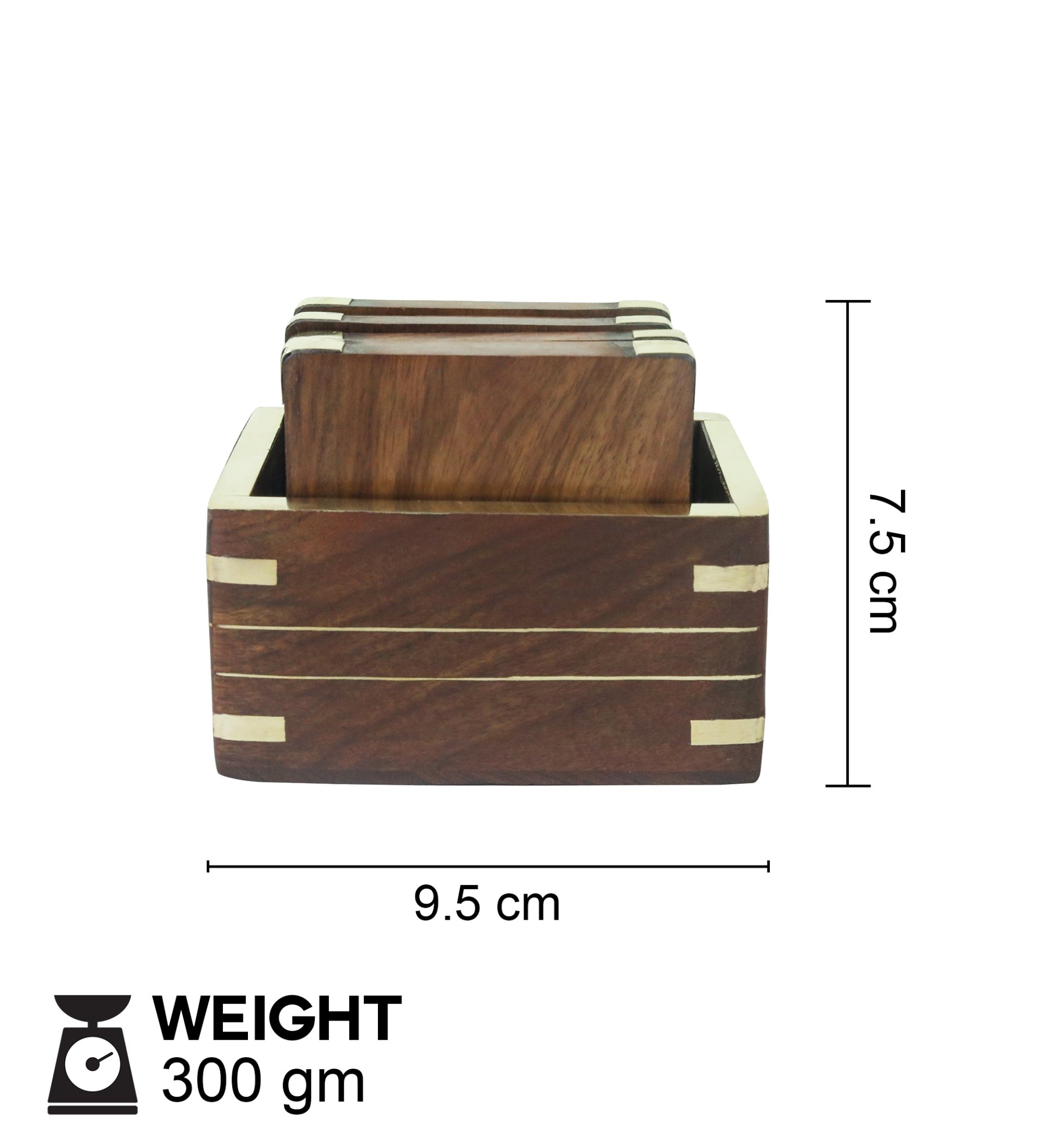 Best Wooden Handcrafted Square Coasters With Rectangle Wooden Case, For Beverages On Table- Set Of 5