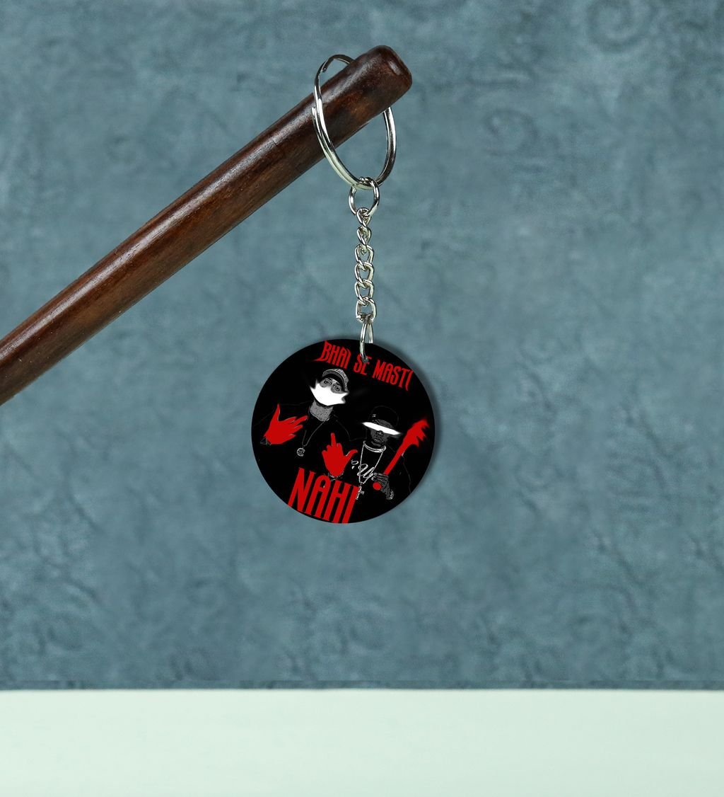 Bhai Se Masti Nahi Attitude Design Printed Round Keychain Pack of 2