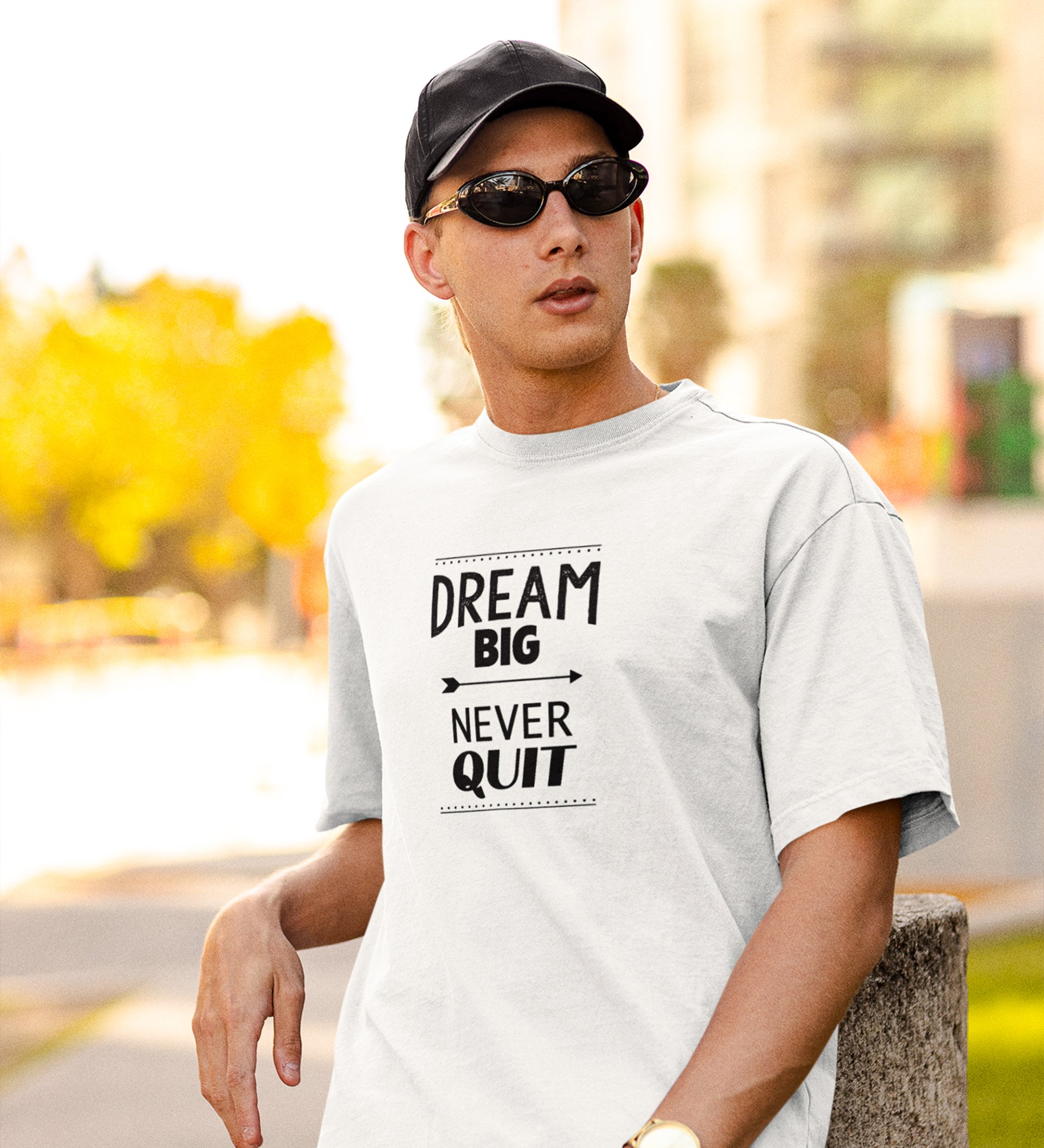 Never Quit White Round Neck Cotton Half Sleeved Men's T-Shirt with Printed Graphics