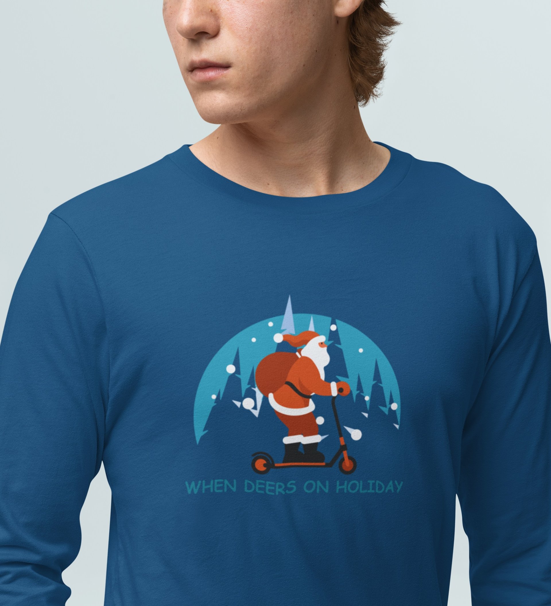 Biker Santa: Best DesignerFull Sleeve T-shirt For Christmas Blue Unique Gift For Boys Girls
