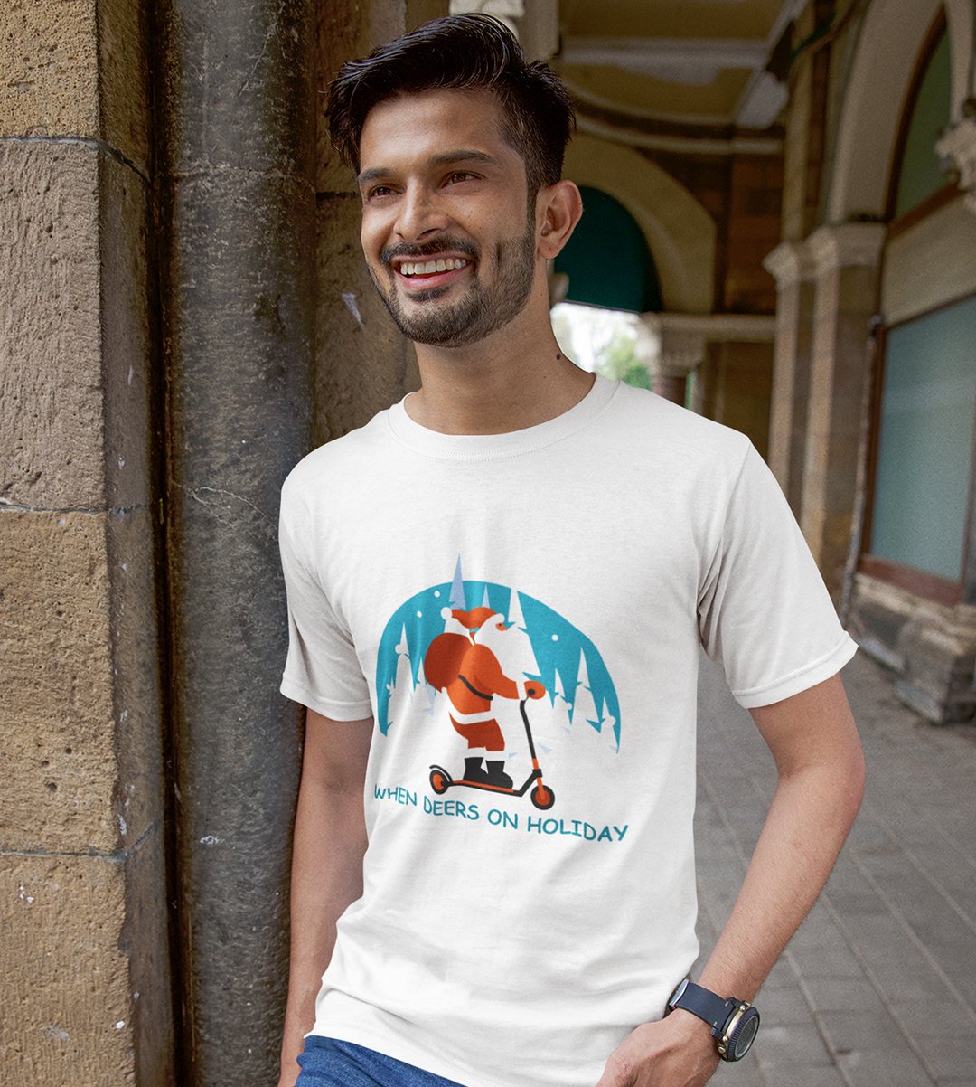 Biker Santa: Unique Printed T-shirt (White) Perfect Gift For Christmas Boys Girls