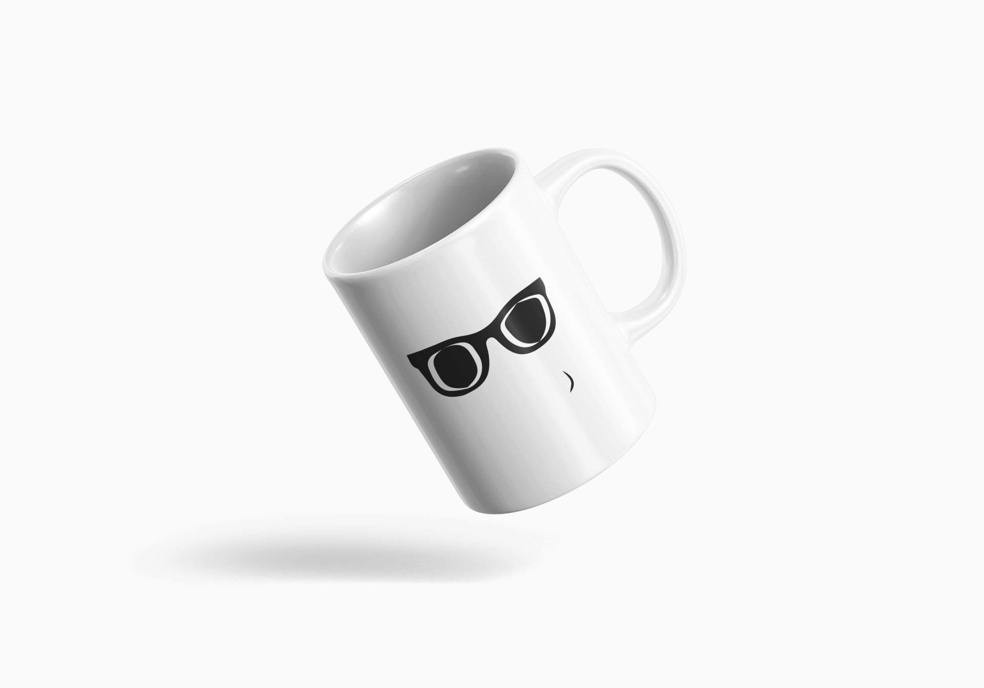 Black & White Glasses Emoji- emoji printed ceramic white coffee and tea mugs/ cups for emoji lover people