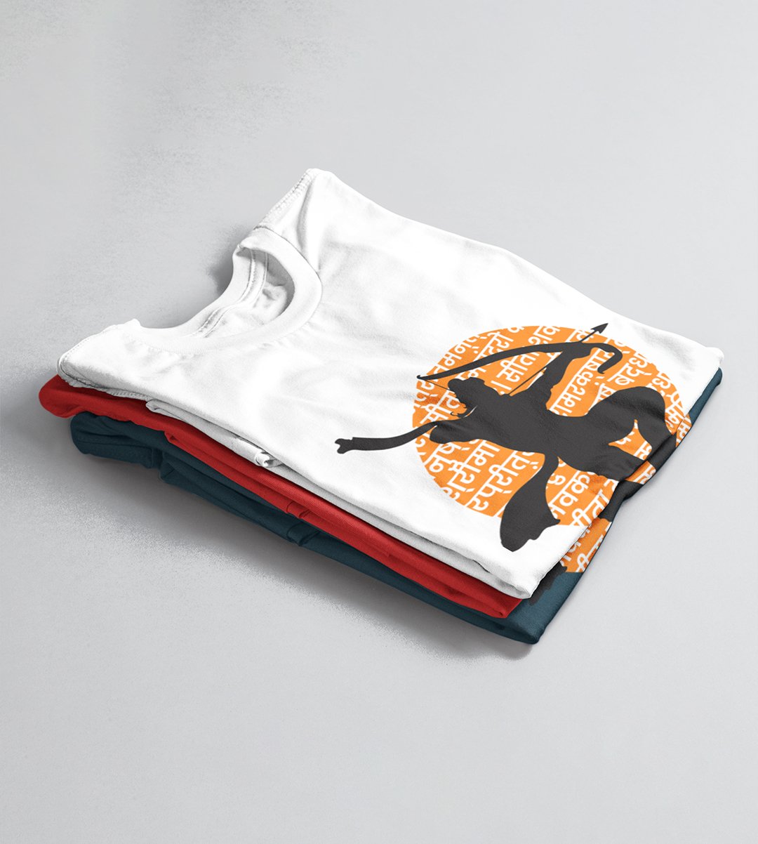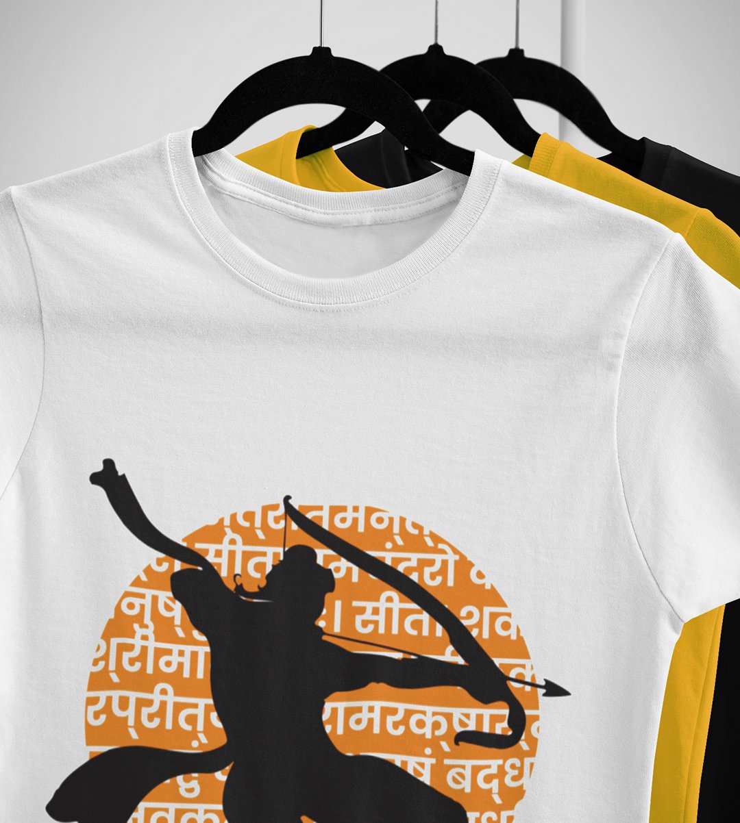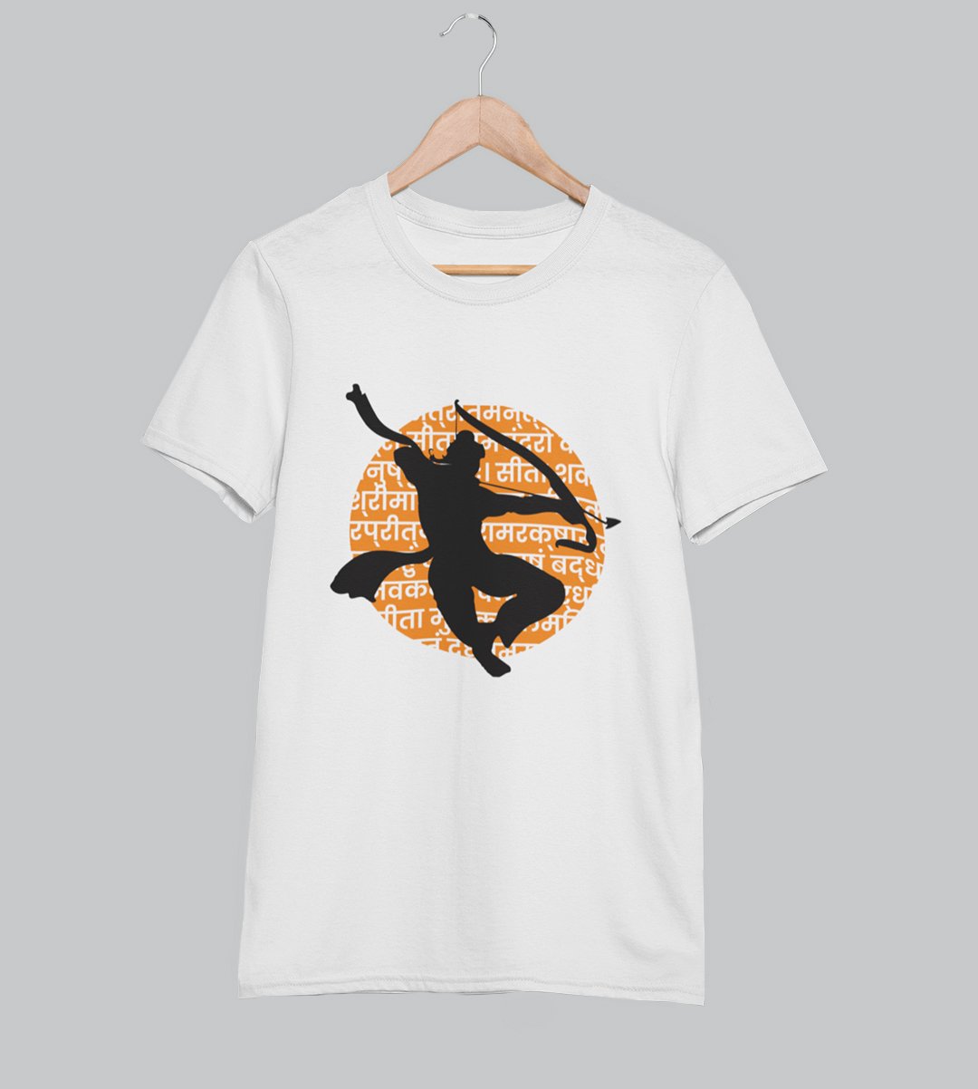 Black shadowed Ram printed unisex adults round neck cotton half-sleeve white tshirt specially for Navratri festival/ Durga puja