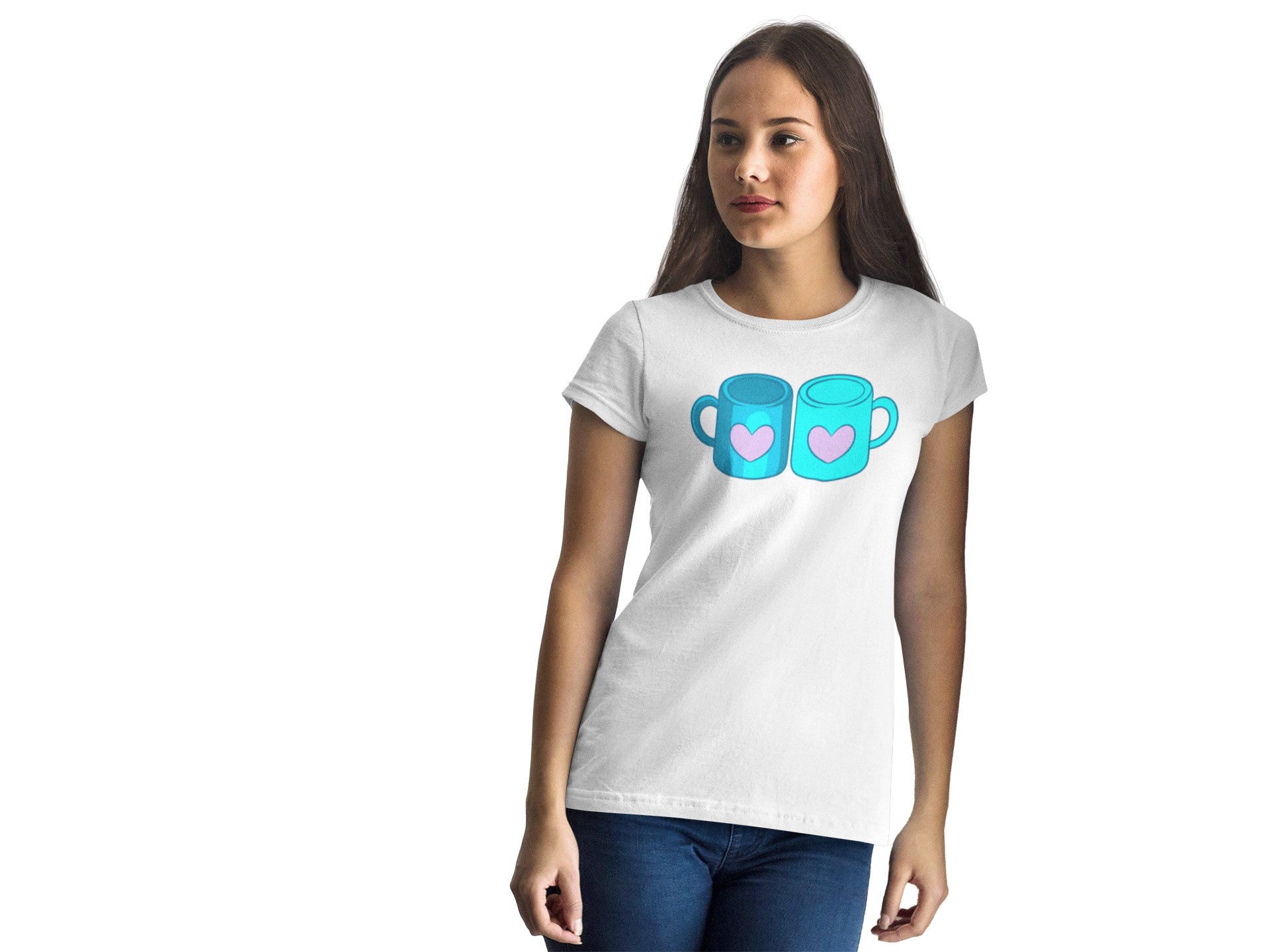 Blue Coffee Mug with Pink Heart Printed White T-Shirts