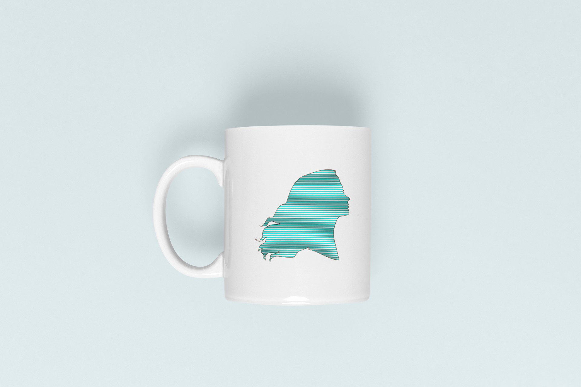 Blue Lady - line art themed printed ceramic white coffee and tea mugs/ cups