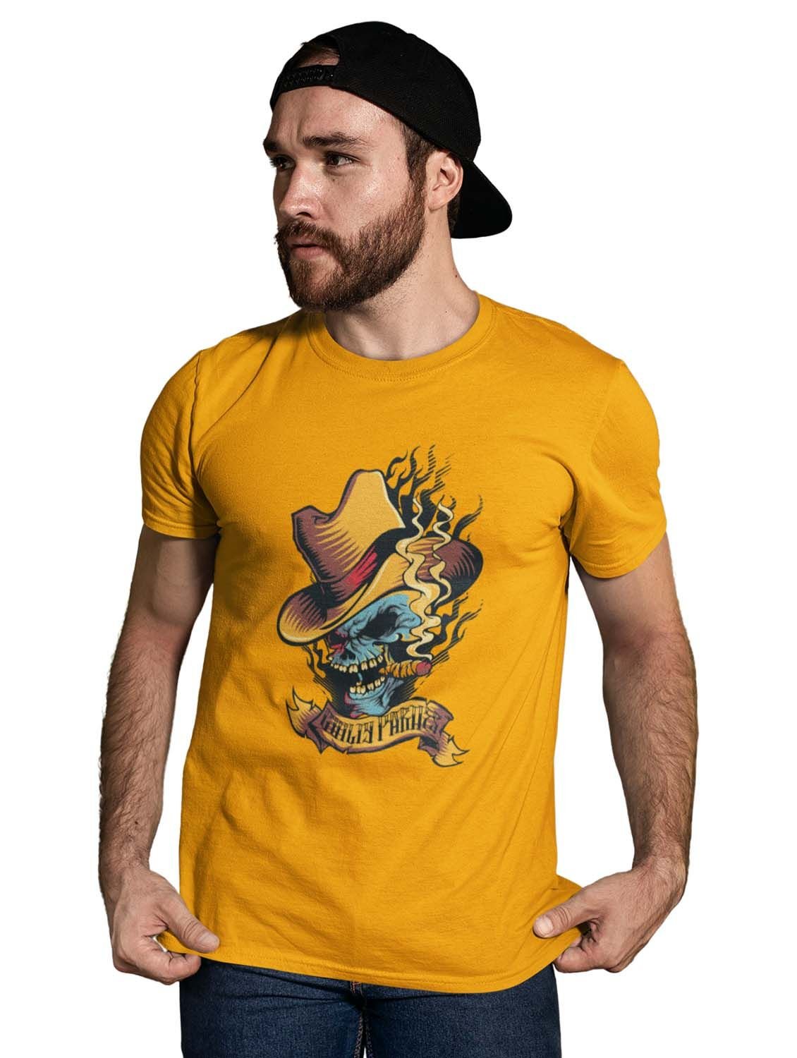 Guilty Parties Yellow Round Neck Cotton Half Sleeved T-Shirt with Printed Graphics