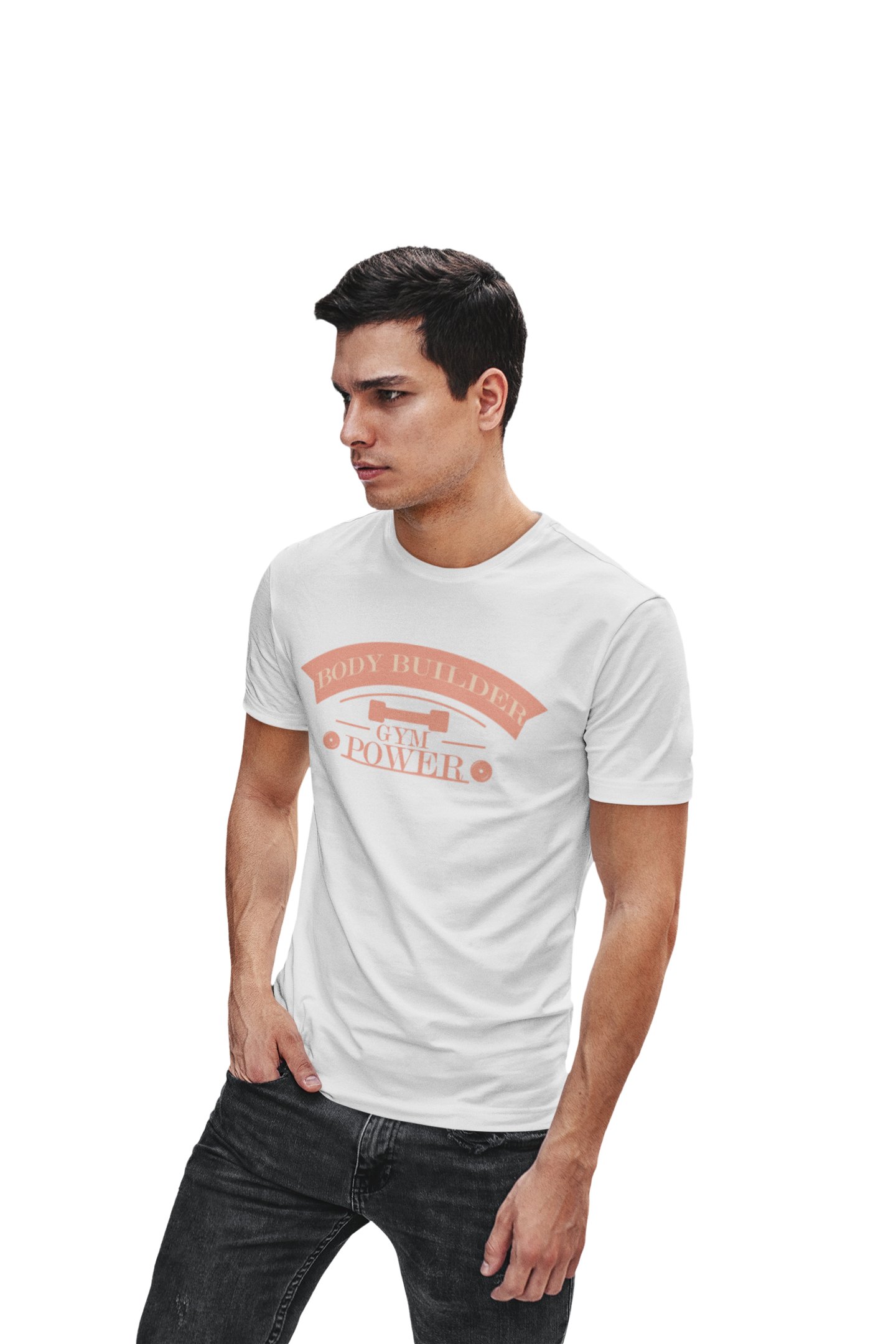 Body Builder, Gym Power,(BG Orange), Round Neck Gym Tshirt (White Tshirt) - Clothes for Gym Lovers - Foremost Gifting Material for Your Friends and Close Ones