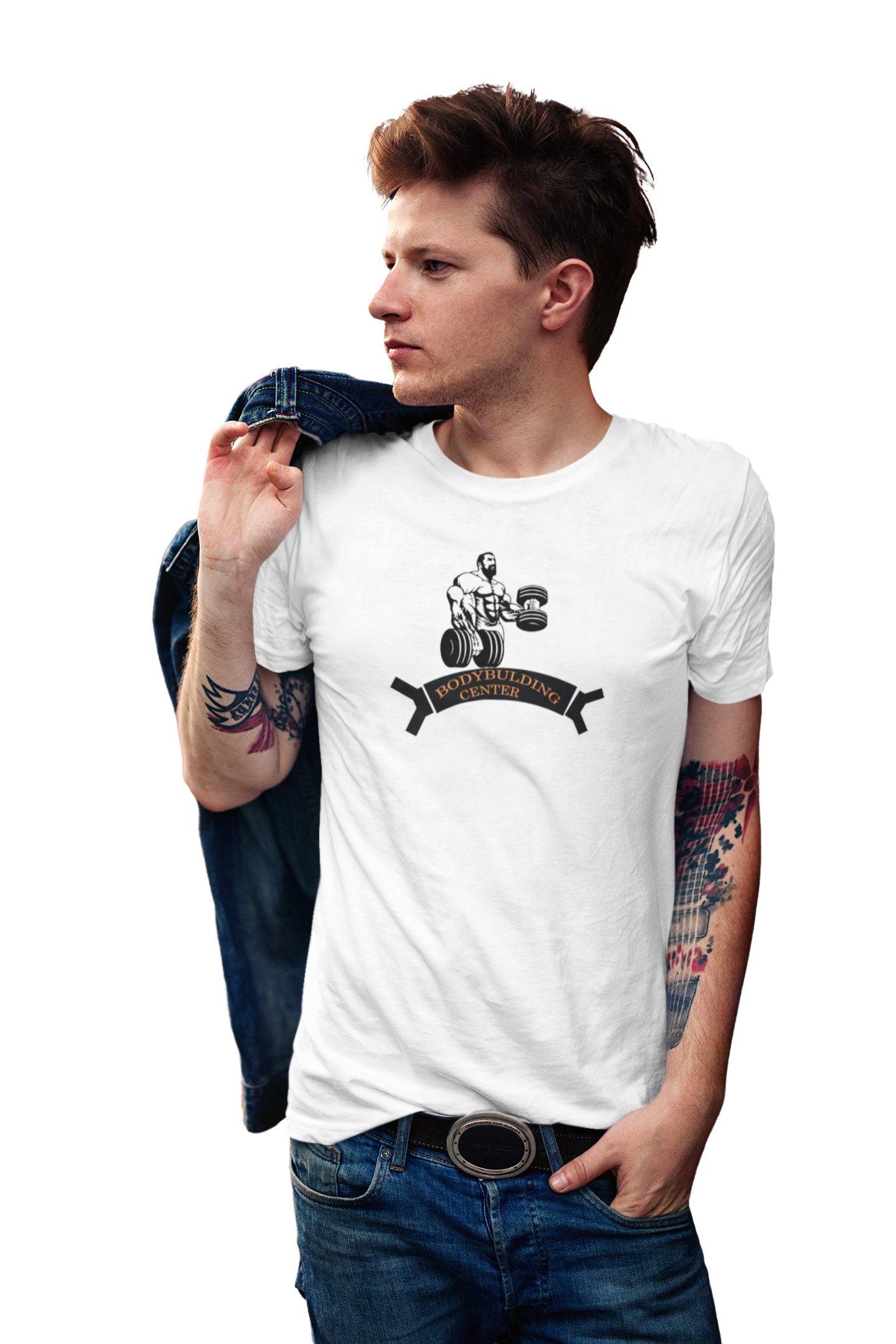 Body Building Center, (BG Black), Round Neck Gym Tshirt (White Tshirt) - Clothes for Gym Lovers - Suitable for Gym Going Person - Foremost Gifting Material for Your Friends and Close Ones