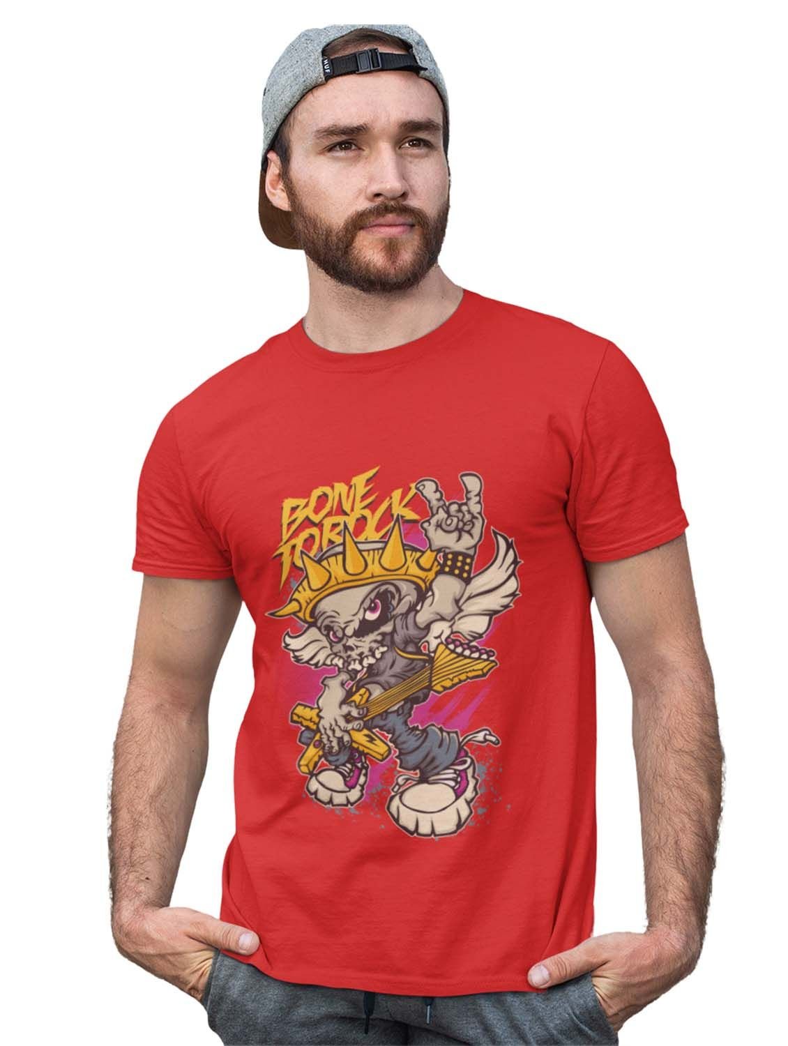 Bone To Rock Red Round Neck Cotton Half Sleeved T-Shirt with Printed Graphics