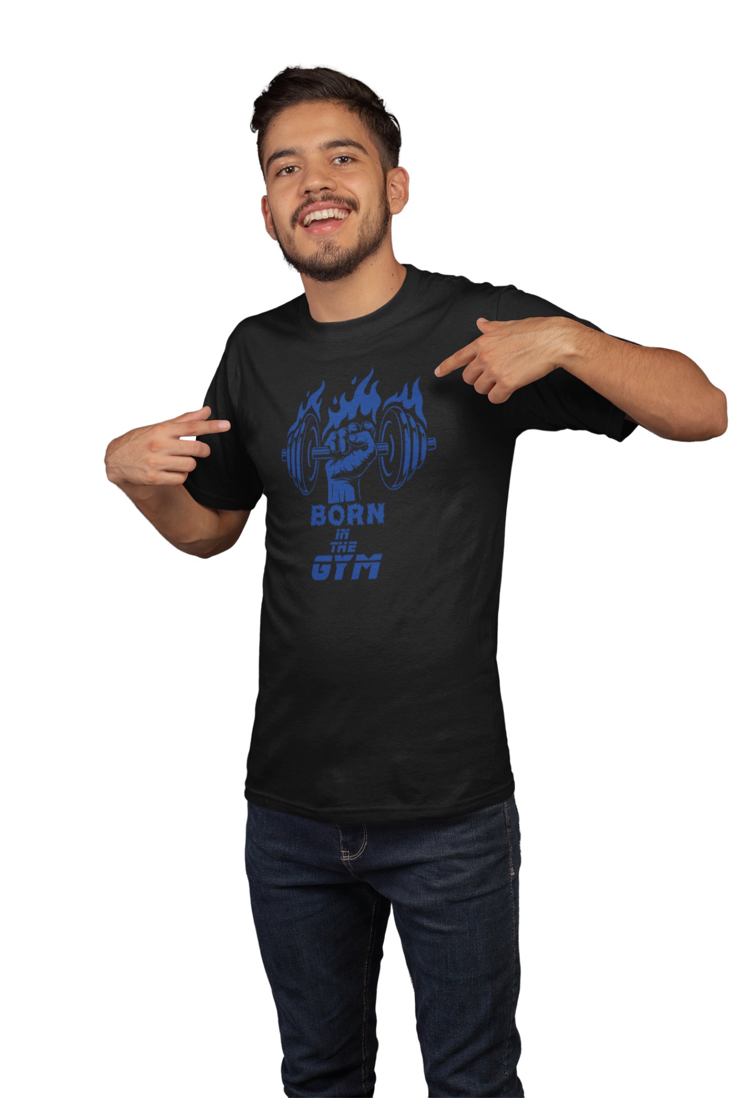 Born To The Gym, (BG Blue), Round Neck Gym Tshirt (Black Tshirt) - Clothes for Gym Lovers - Suitable for Gym Going Person - Foremost Gifting Material for Your Friends and Close Ones