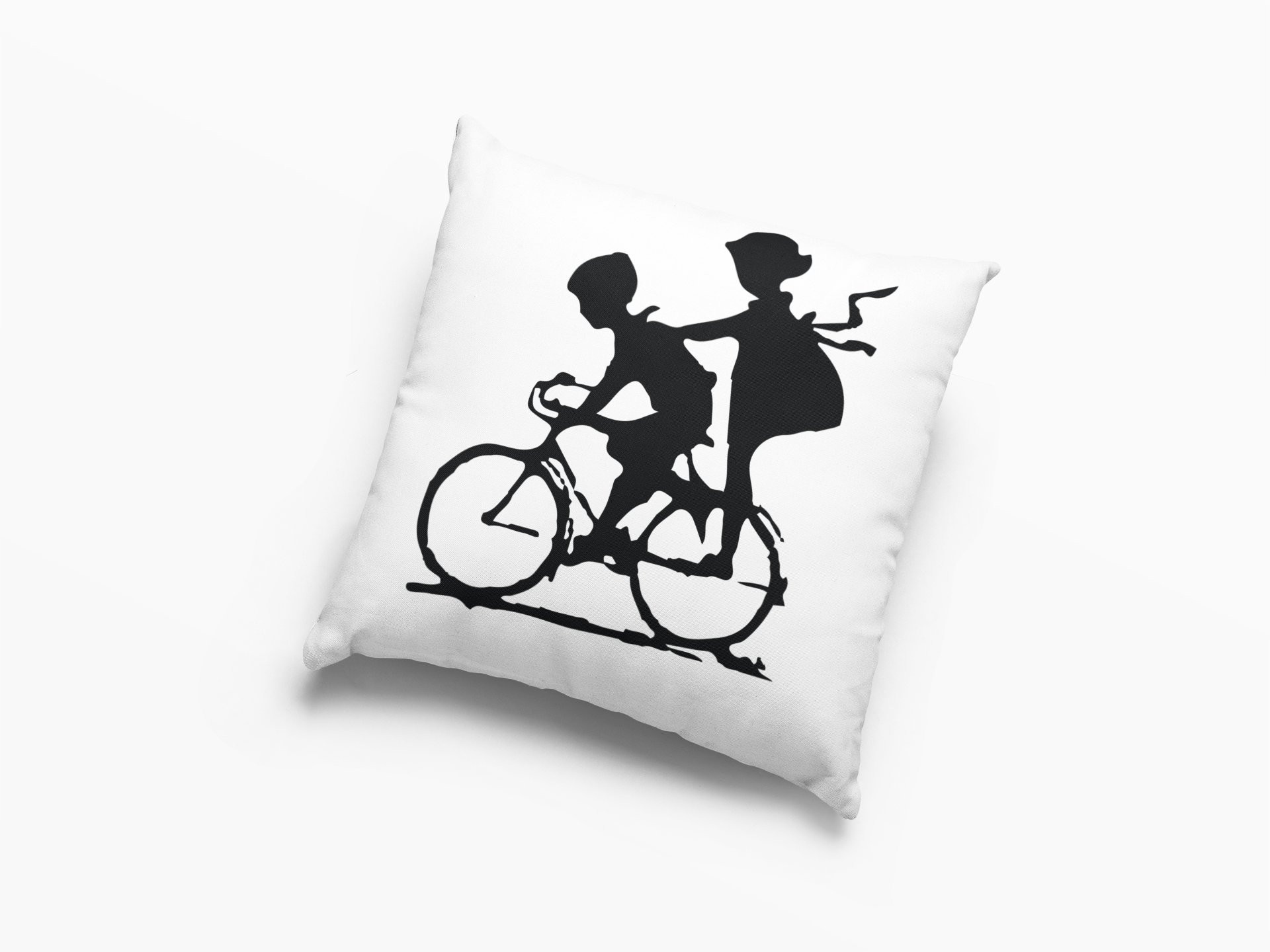 Boy and girl cycling toghether - Printed Pillow Covers (Pack Of Two)
