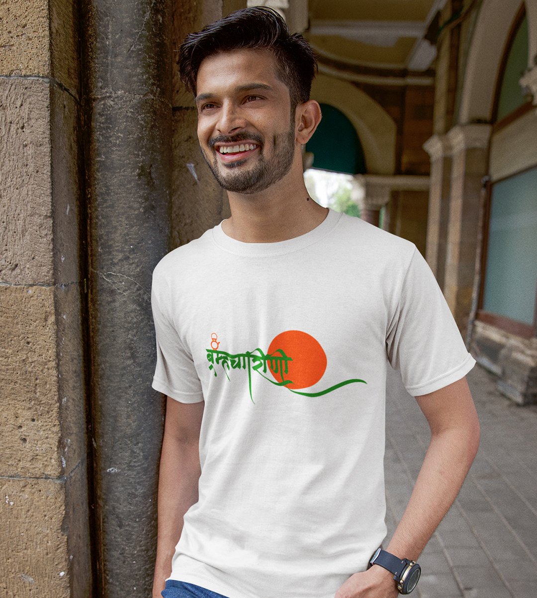 Brahmacharini printed unisex adults round neck cotton half-sleeve white tshirt specially for Navratri festival/ Durga puja