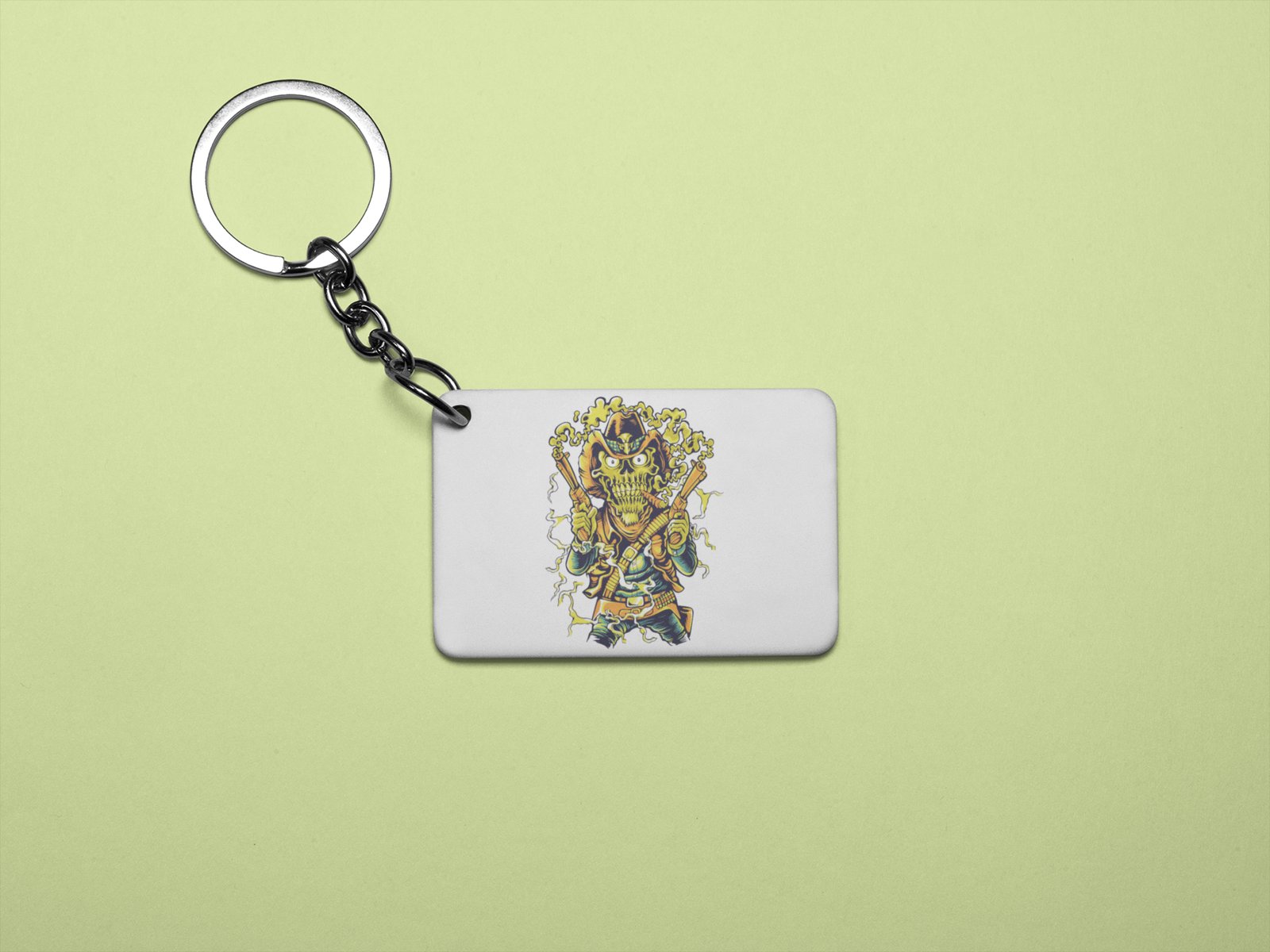 Brown skull with hat - Printed acrylic animated Keychain(Pack Of 2)