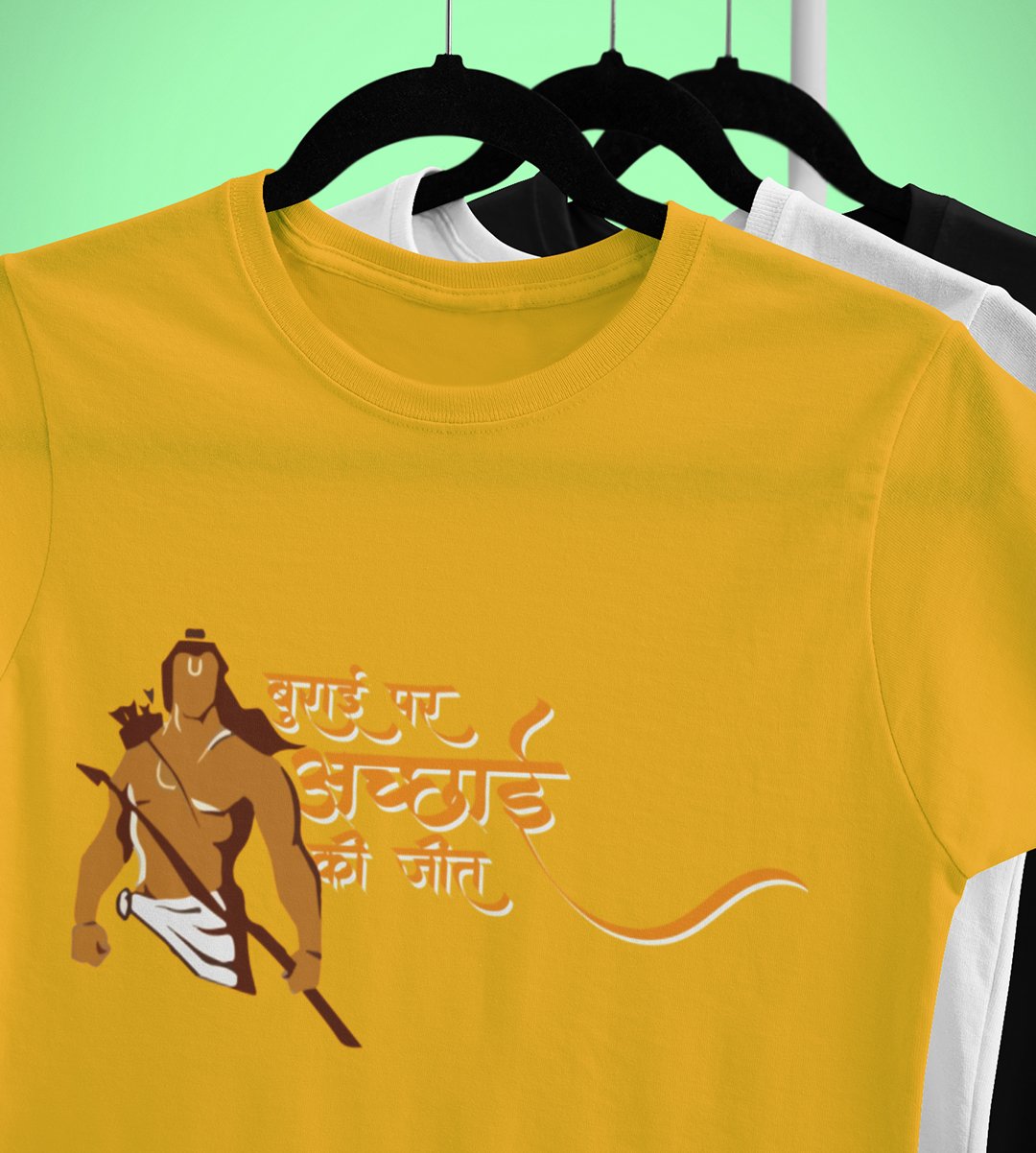 Budhai par acchayi printed unisex adults round neck cotton half-sleeve yellow tshirt specially for Navratri festival/ Durga puja