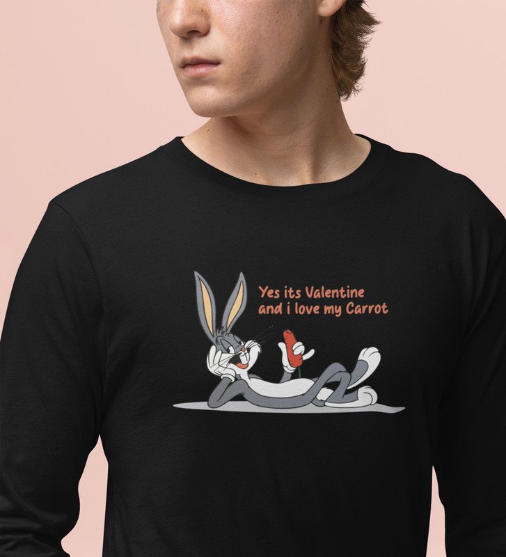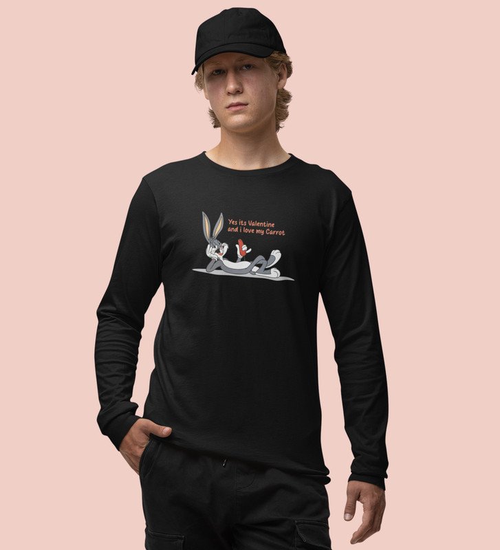 Bunny Loves carrot: (black) Full Sleeve T-Shirt For Singles