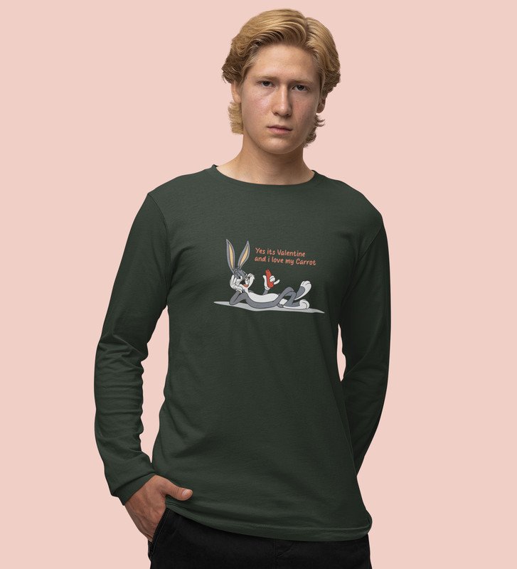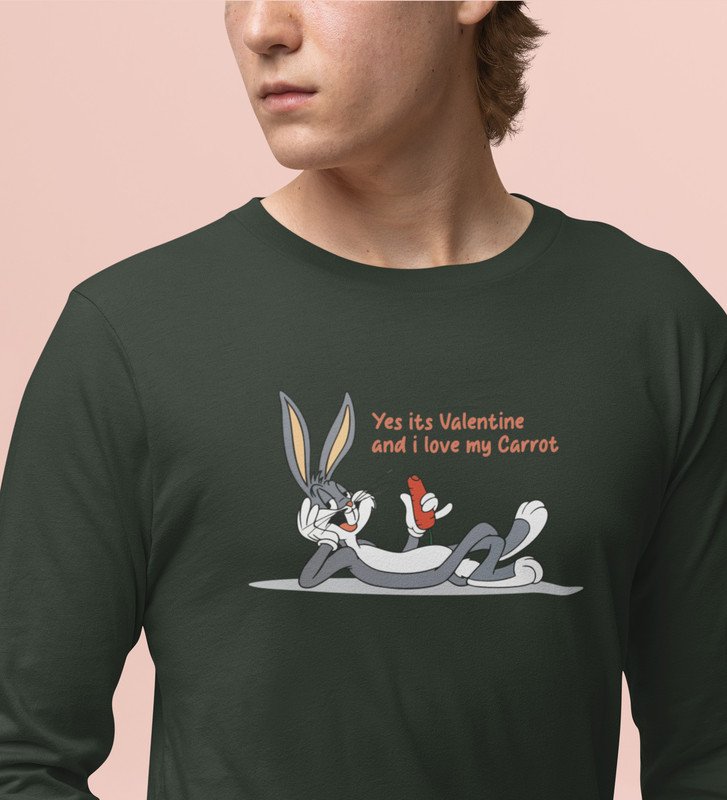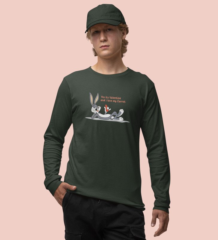 Bunny Loves carrot: (green) Full Sleeve T-Shirt For Singles