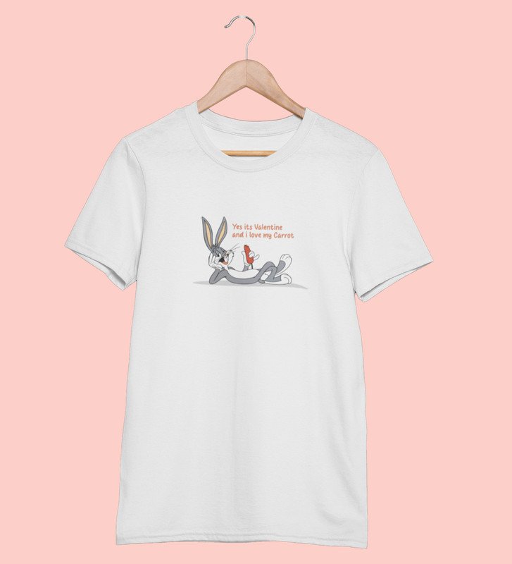 Bunny Loves carrot: (white) T-Shirt For Singles