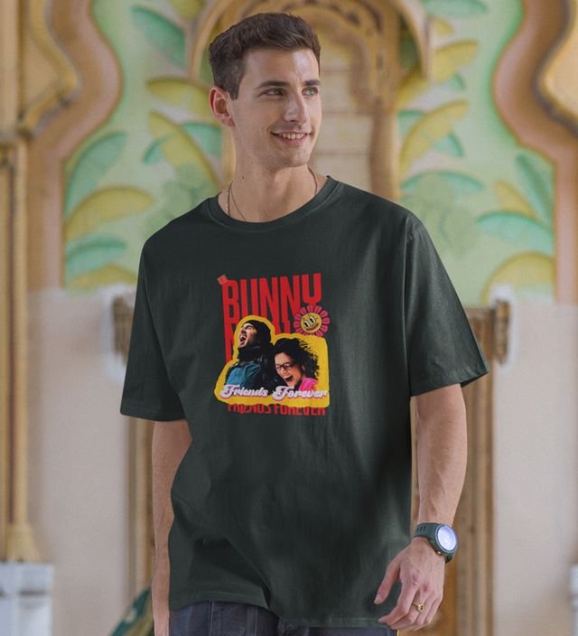 Bunny & Naina Green Round Neck Cotton Half Sleeved Men T-Shirt with Printed Graphics