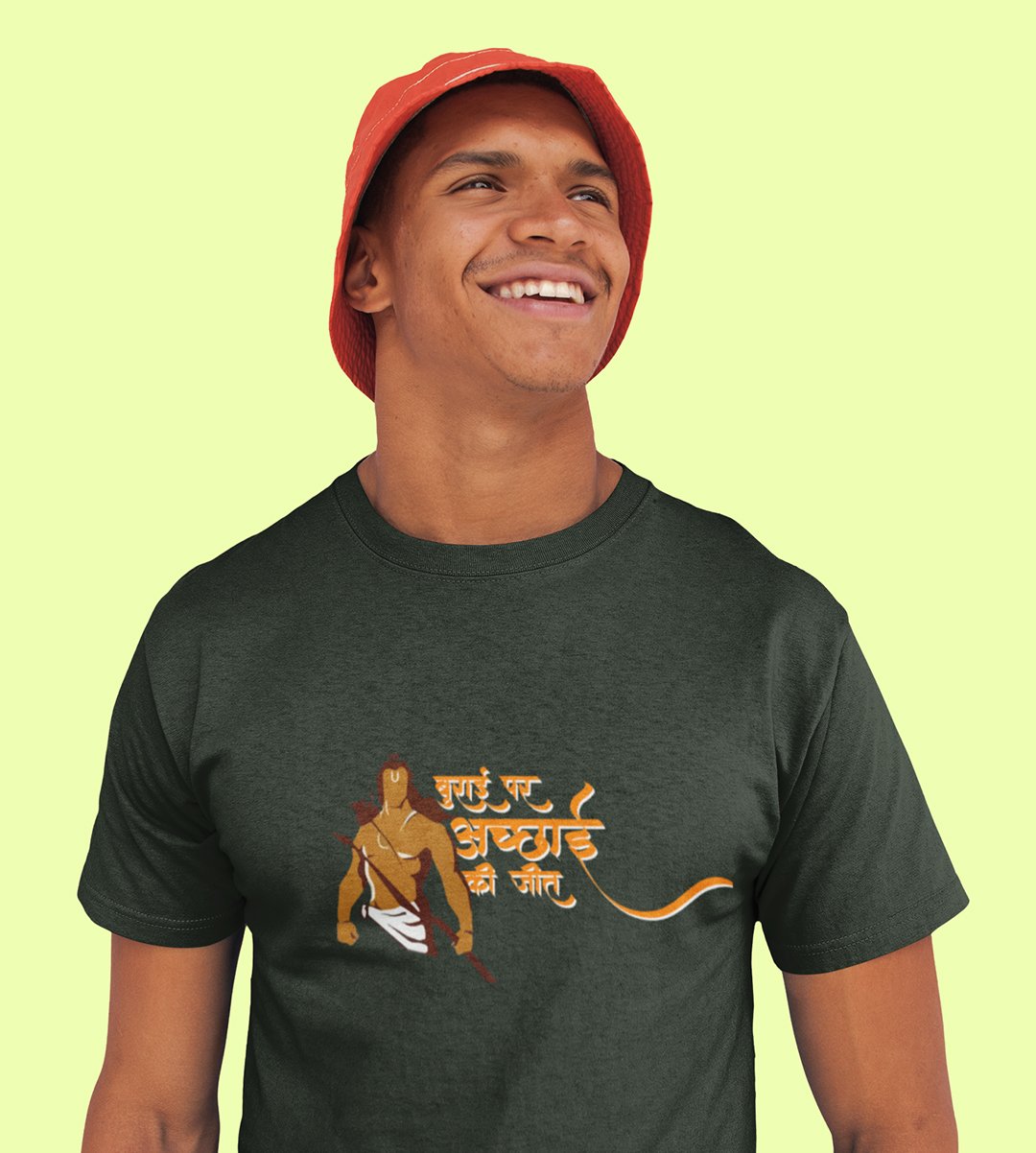 Burai par acchayi printed unisex adults round neck cotton half-sleeve green tshirt specially for Navratri festival/ Durga puja