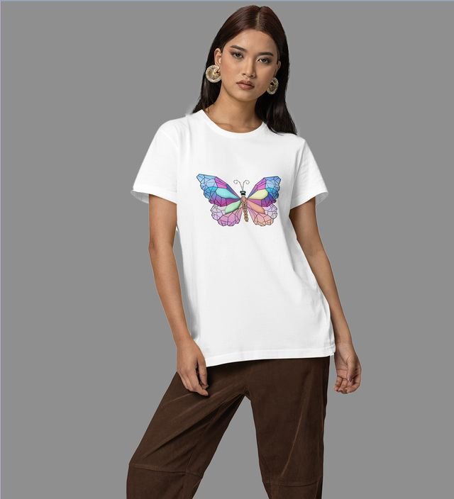Butterfly Dreams Unfold: Graphic Printed White T-Shirt