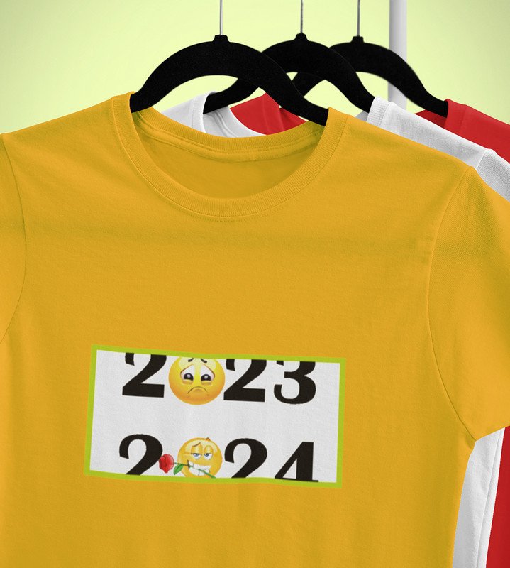 Bye 2023 Welcome 2024 Yellow New Year Printed T-shirt For Mens