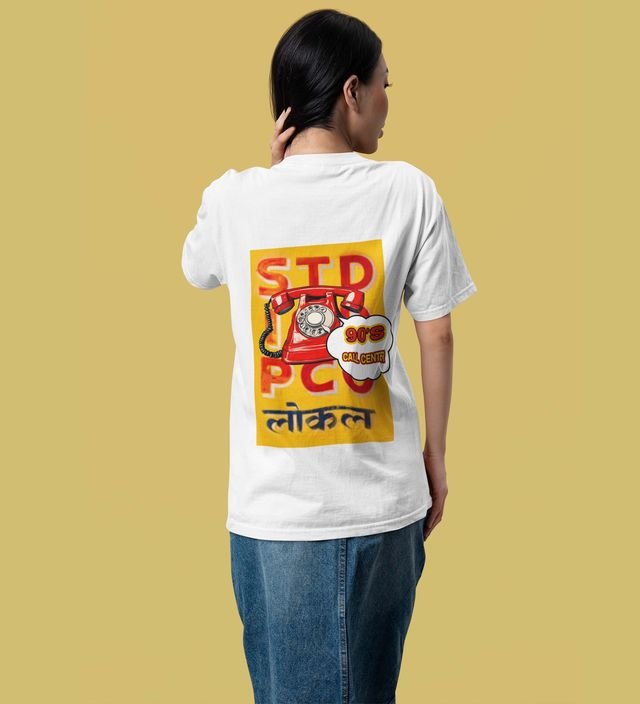 Call from the Past: Bold Hindi Phone Graphic Printed Black T-Shirt