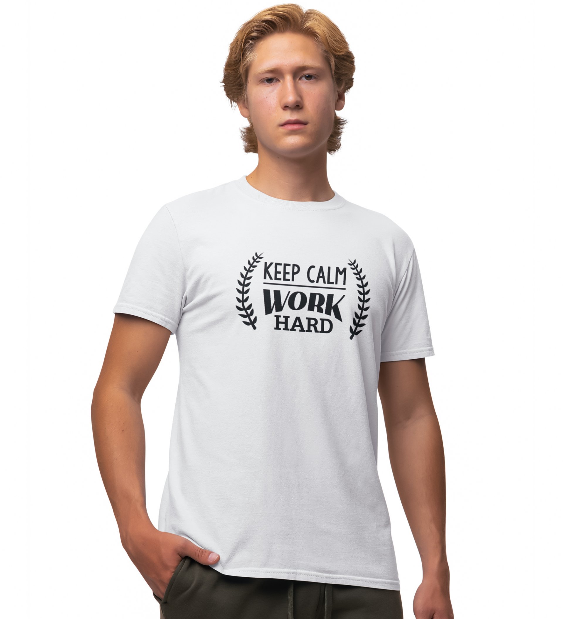 Work Hard White Round Neck Cotton Half Sleeved Men's T-Shirt with Printed Graphics