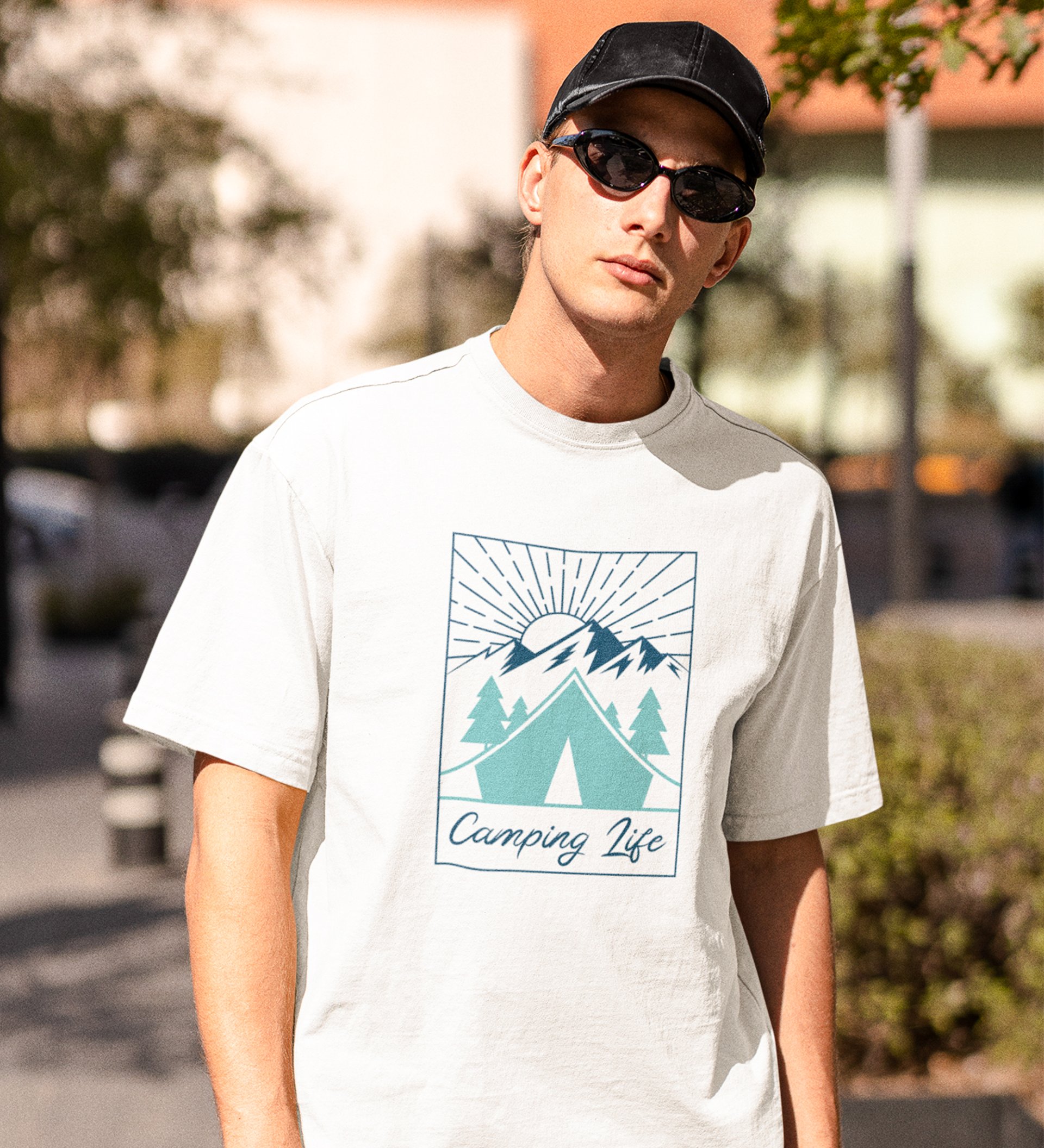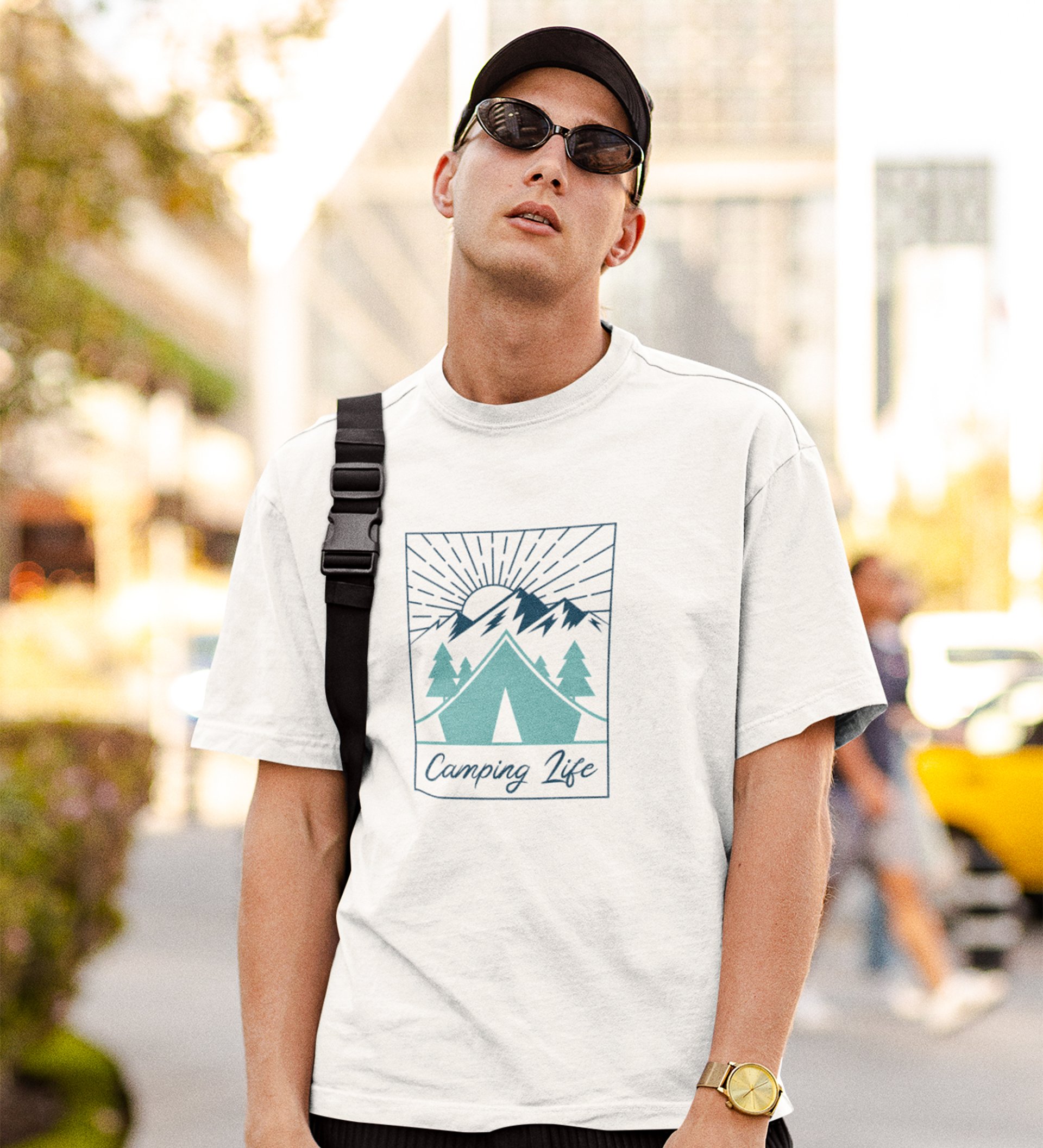 JD.TRENDS Camping Life White Round Neck Cotton Half Sleeved Men's T-Shirt with Printed Graphics