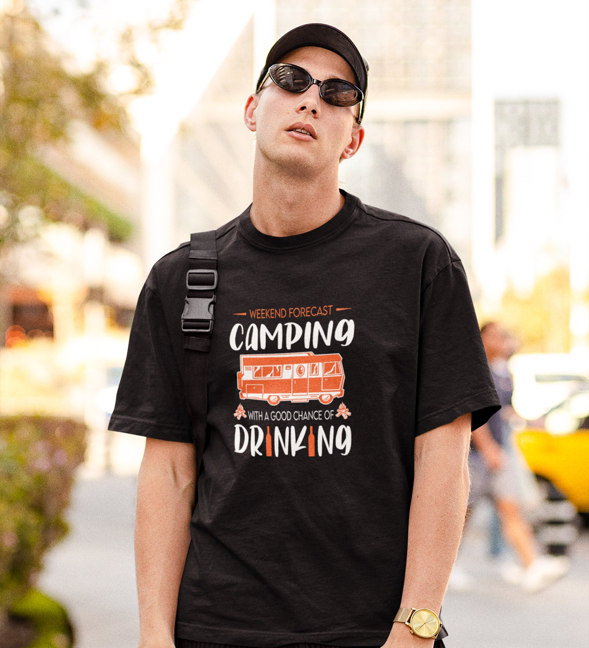 JD.TRENDS The Camping Purpose Black Round Neck Cotton Half Sleeved Men's T-Shirt with Printed Graphics