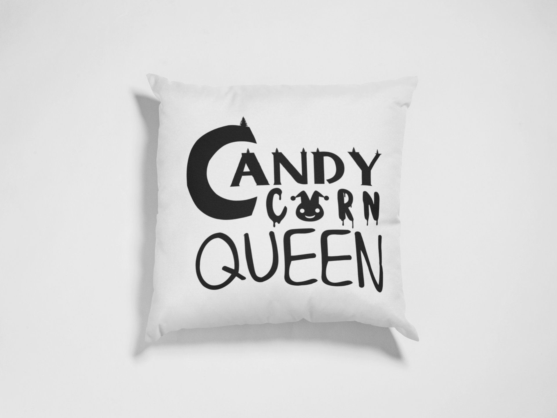 Candy Corn Queen Black Text -Haunted House -Halloween Theme Pillow Covers (Pack Of 2)