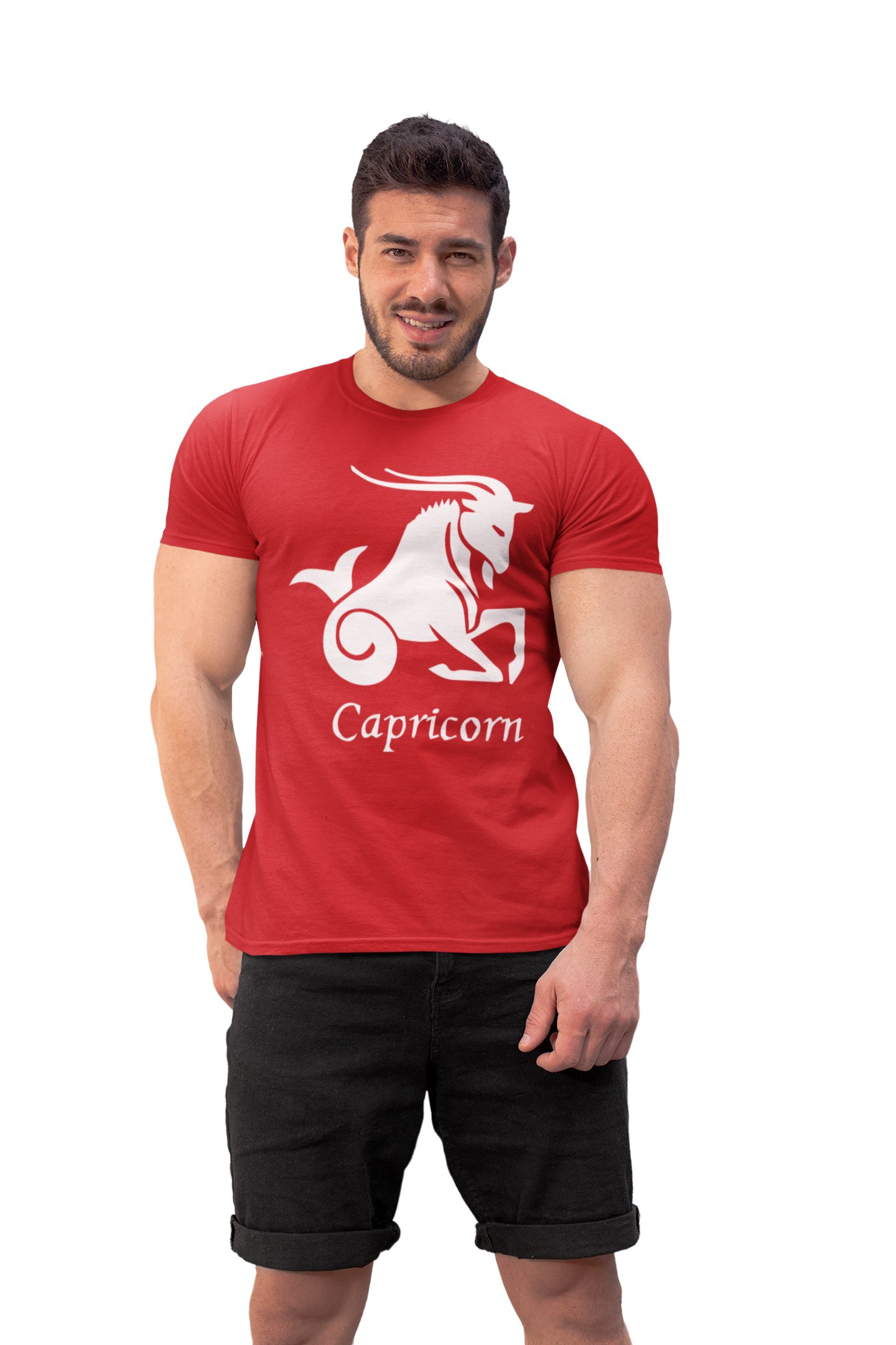 Capricorn (BG White) (Red T) - Printed Zodiac Sign Tshirts - Made especially for astrology lovers people