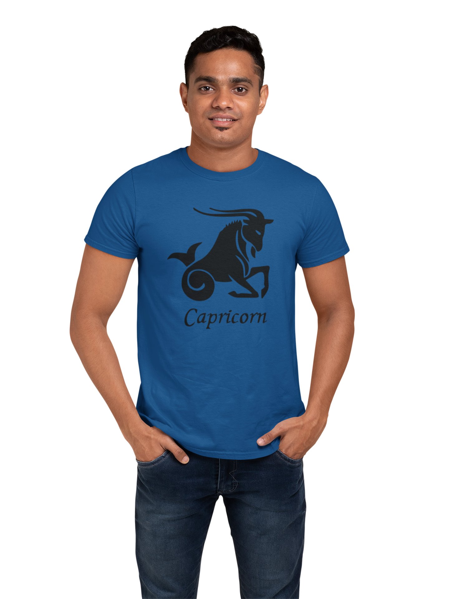 Capricorn symbol (BG Black)(Blue T) - Printed Zodiac Sign Tshirts - Made especially for astrology lovers people