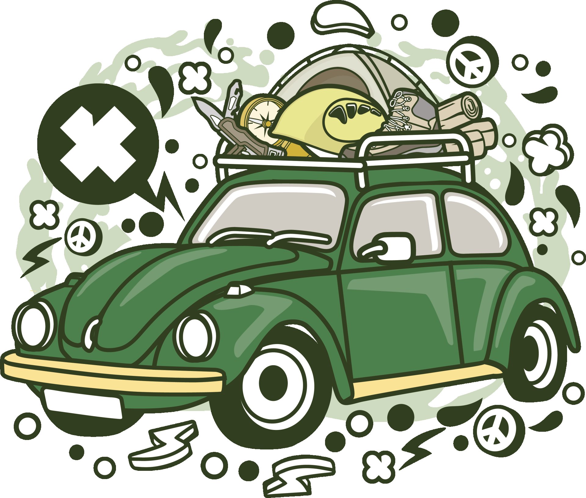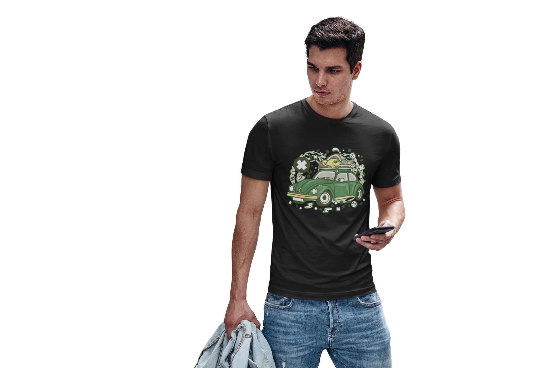 Green car -round crew neck cotton tshirts for men