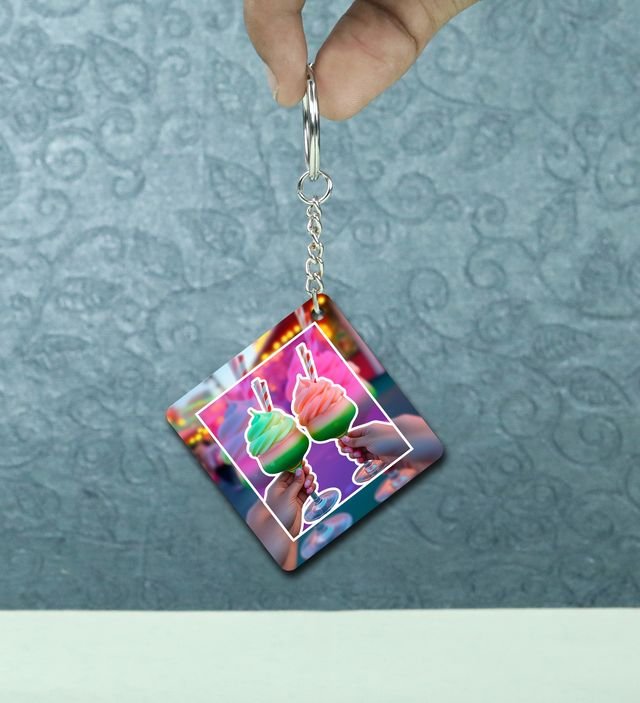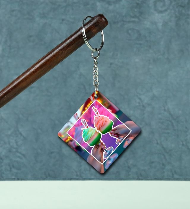 Carnival Fun Swirled Dessert Drinks Printed Keychain Pack of 2