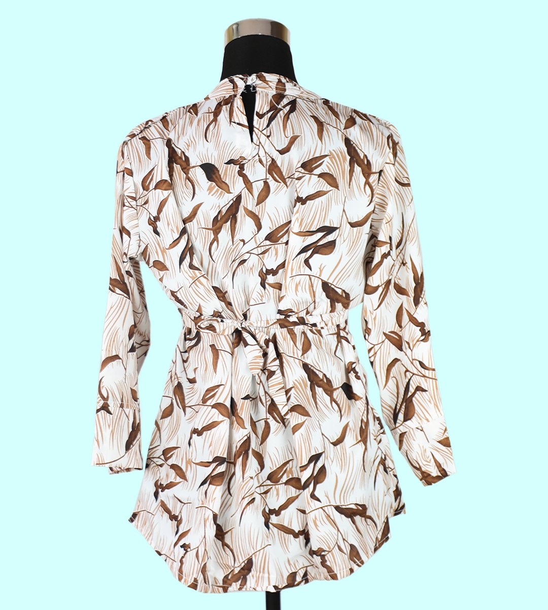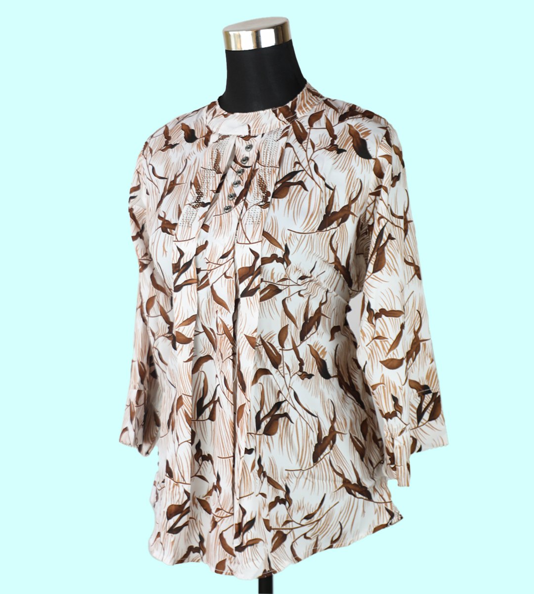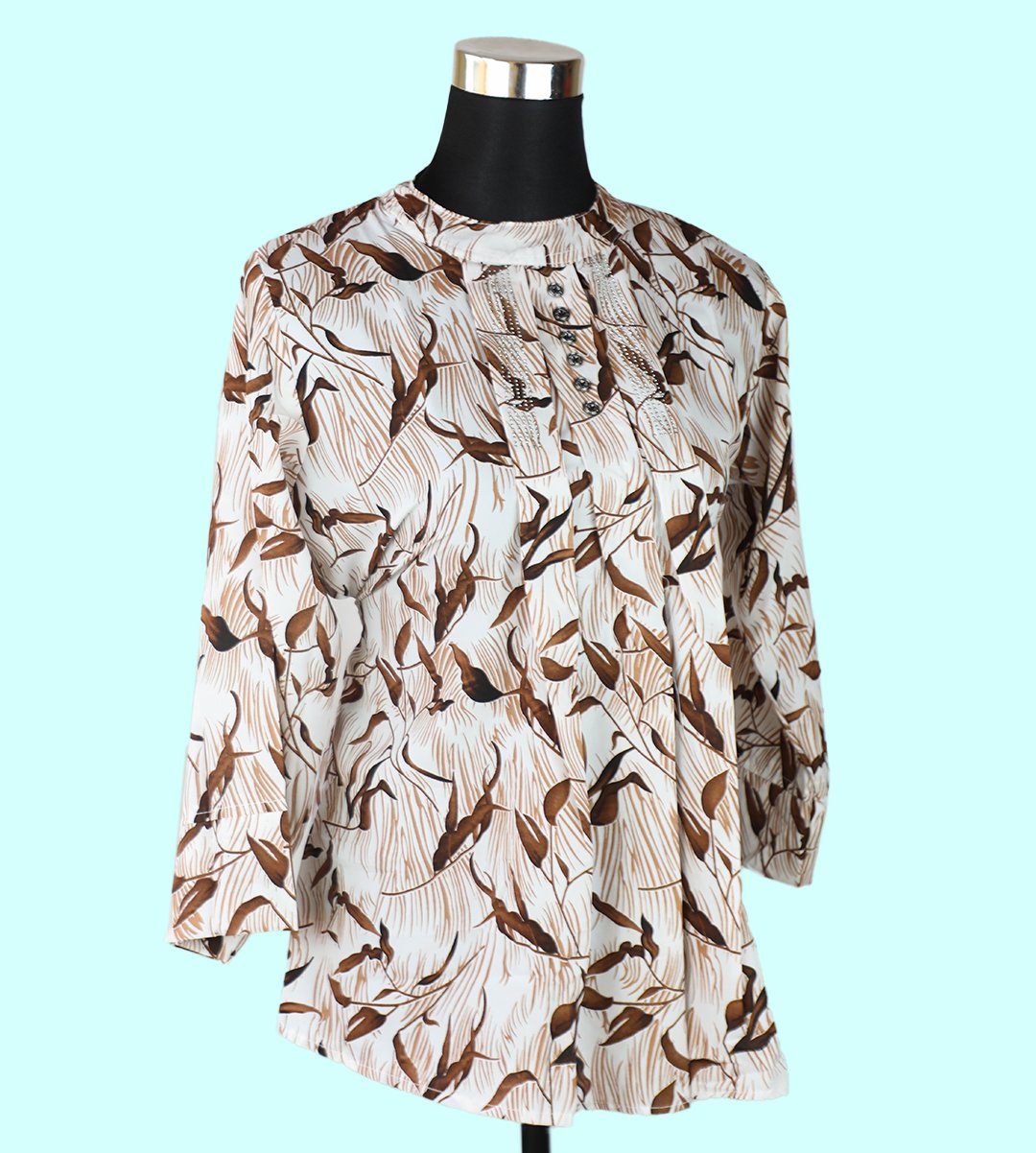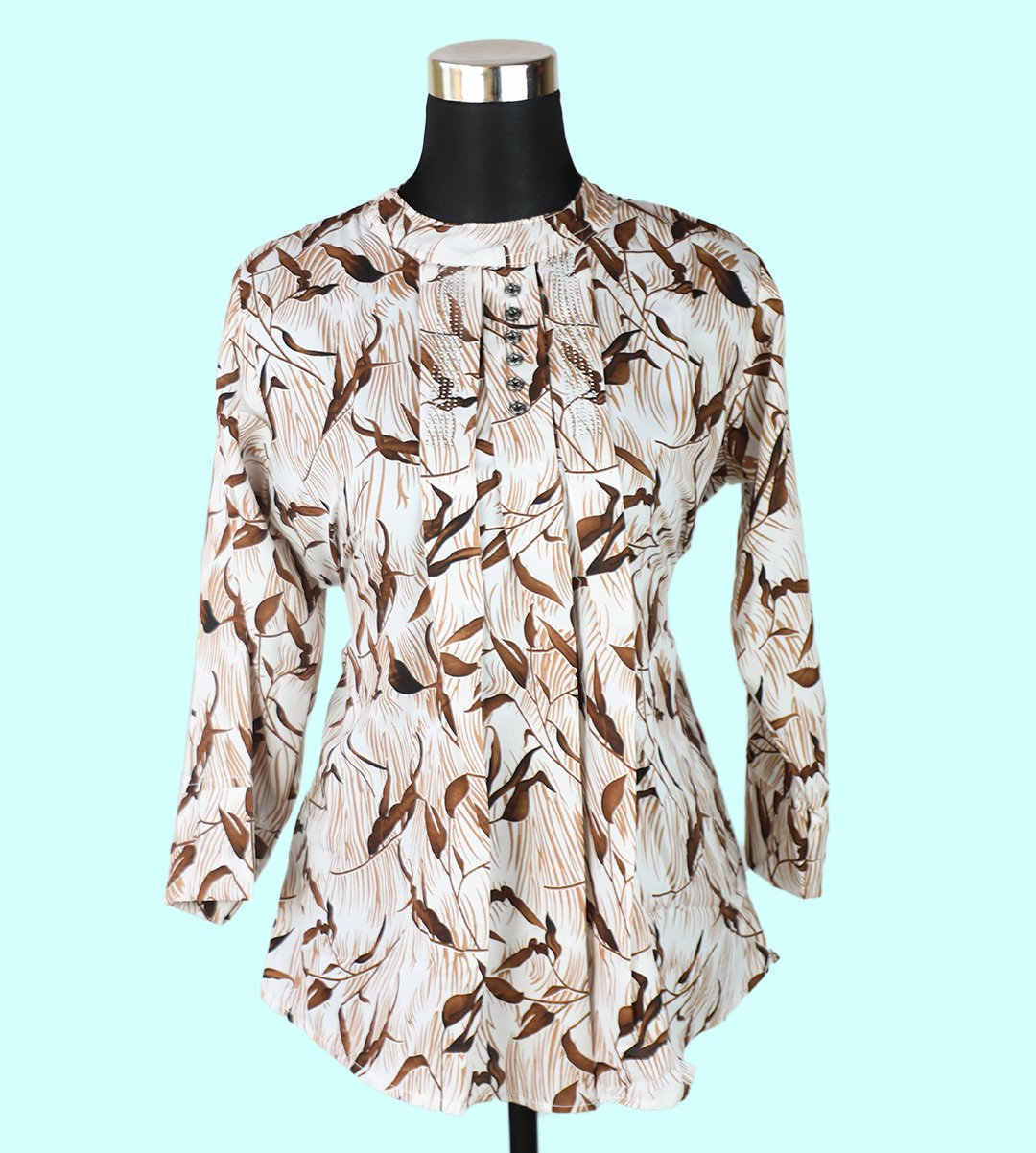 Embrace casual elegance with our Women's White Top featuring a chic brown print. This top offers a relaxed and comfortable fit, making it perfect for laid-back days. Crafted from soft Rayon fabric, it combines style and ease. The brown print adds a touch of sophistication to your casual look.