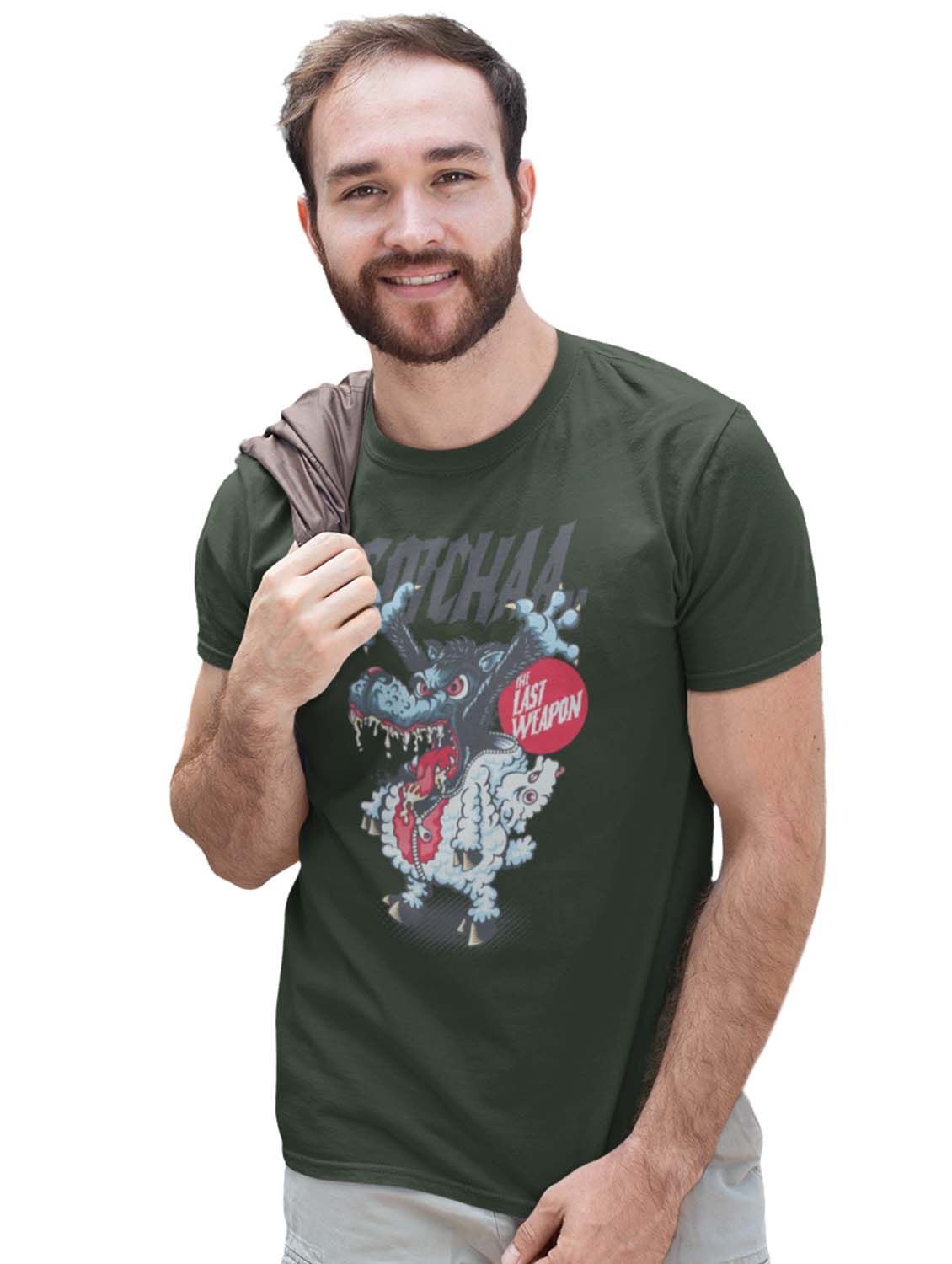 The Last Weapon Green Round Neck Cotton Half Sleeved T-Shirt with Printed Graphics