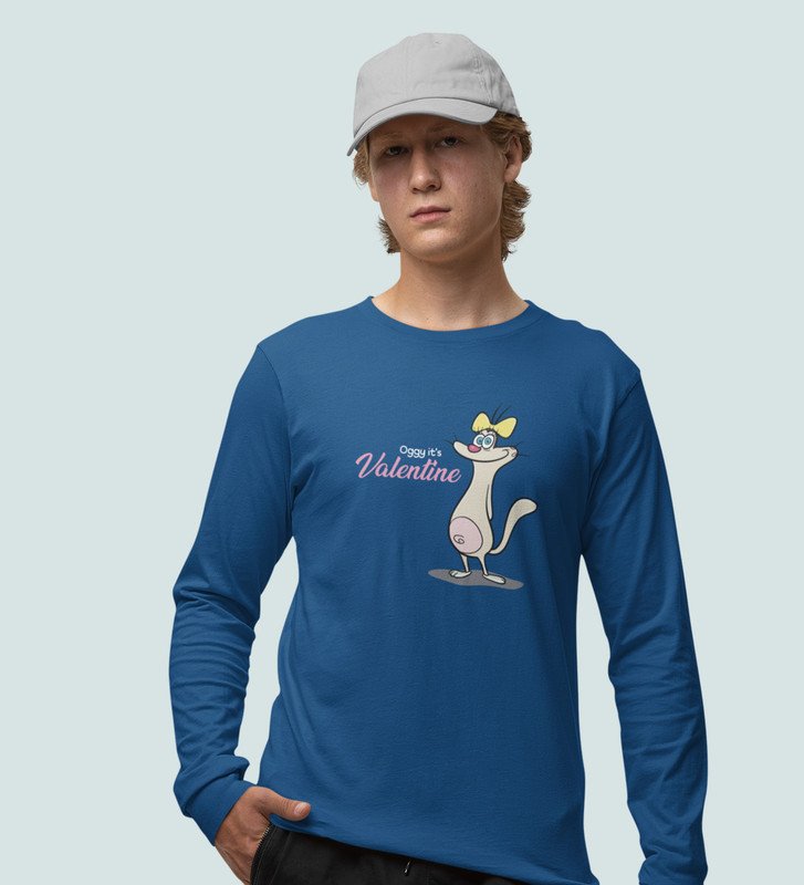 Cats Love Valentines: Attractive Printed (blue) Full Sleeve T-Shirt For Singles
