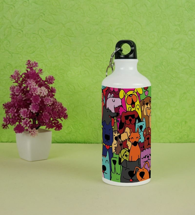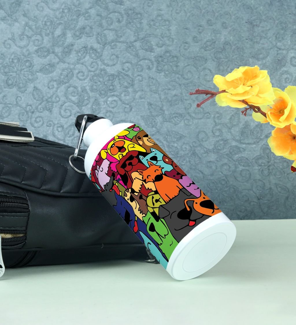Charming Colorful and Cheerful Dog Characters Doodles Printed Aluminium Water Bottle 600ml
