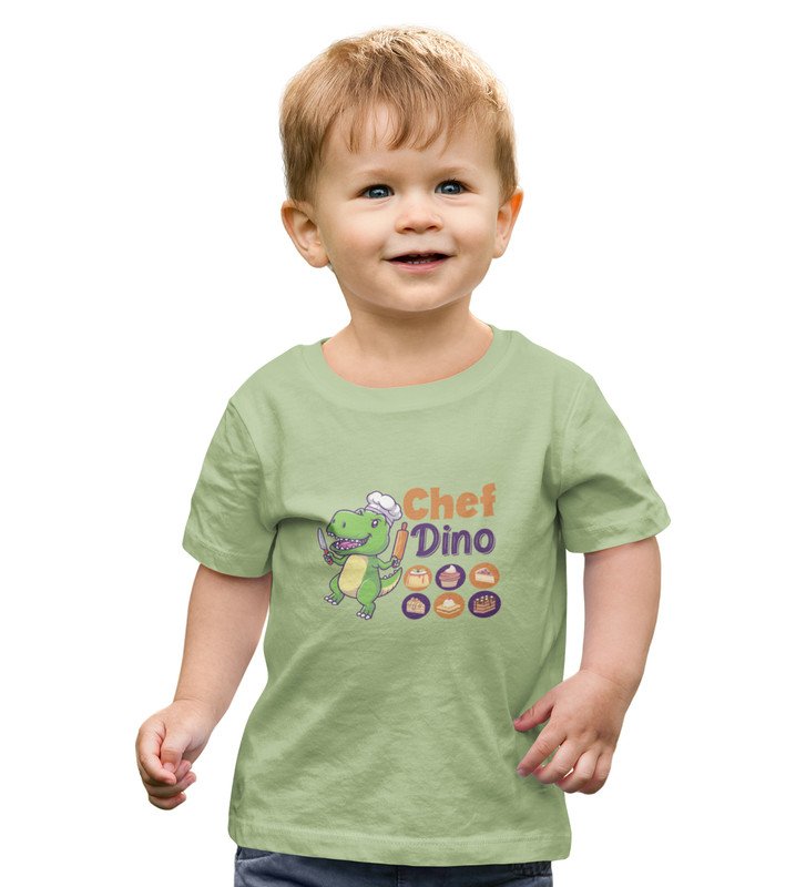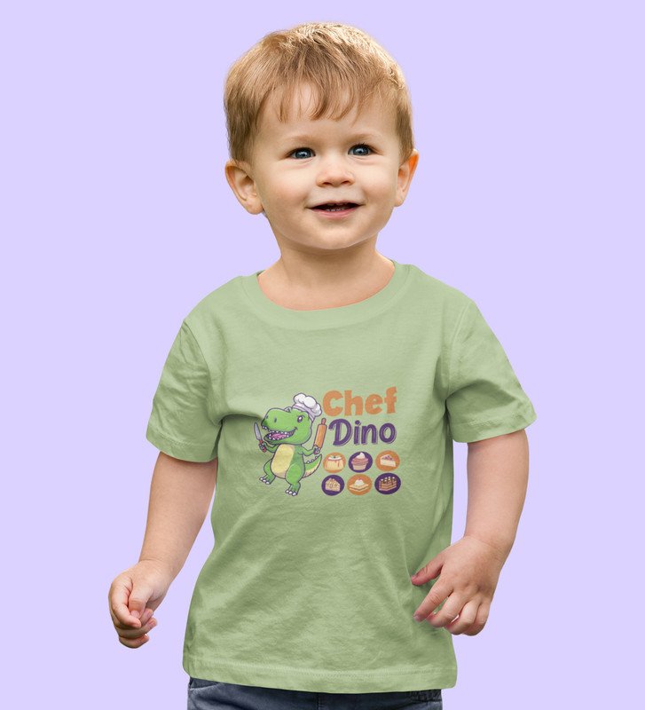 Chef Dino, Printed Cotton T-shirt (olive green) for Boys