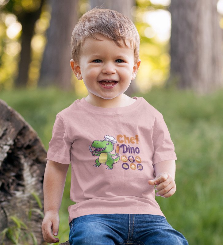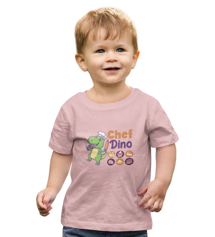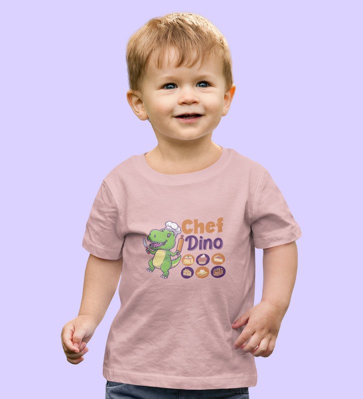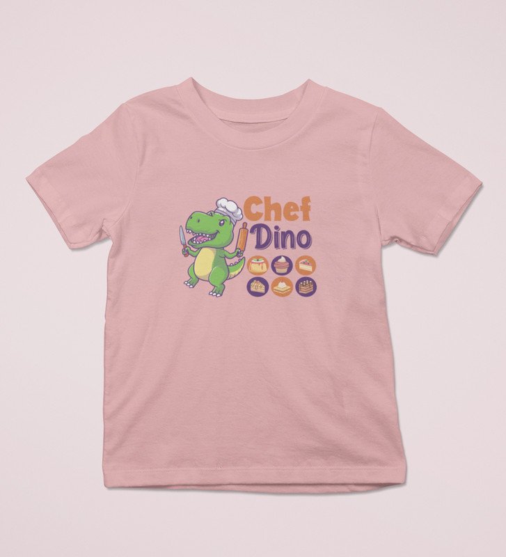 Chef Dino, Printed Cotton Tshirt (baby pink) for Boys