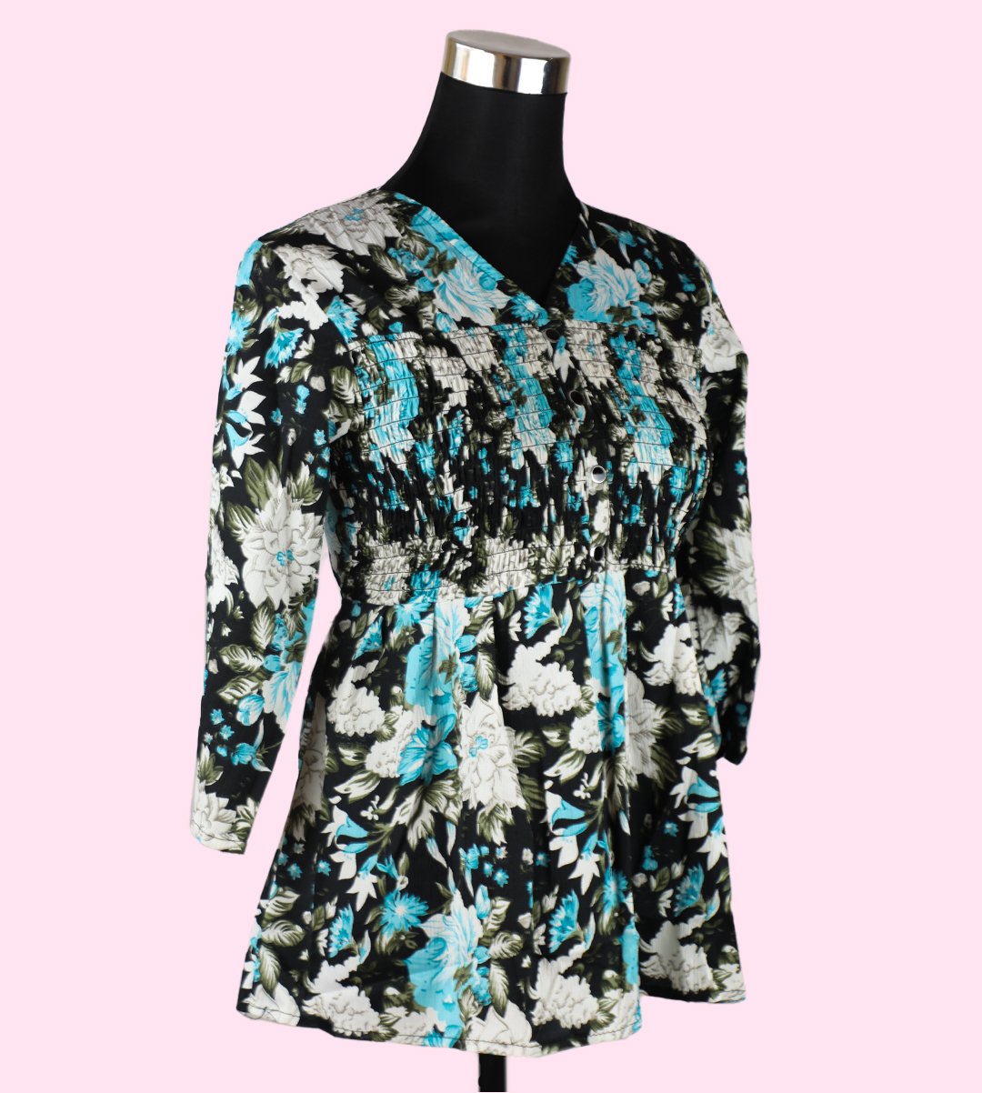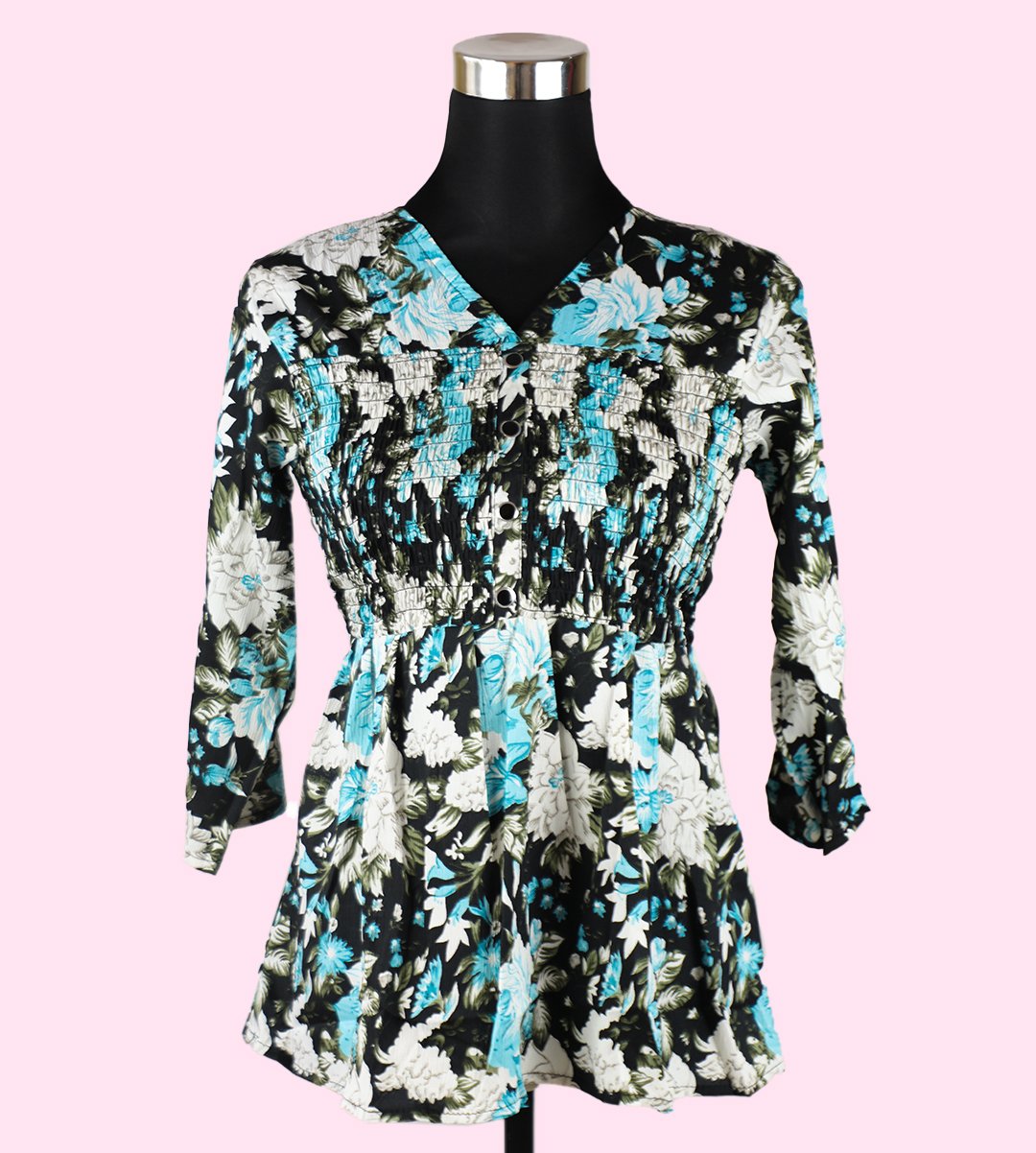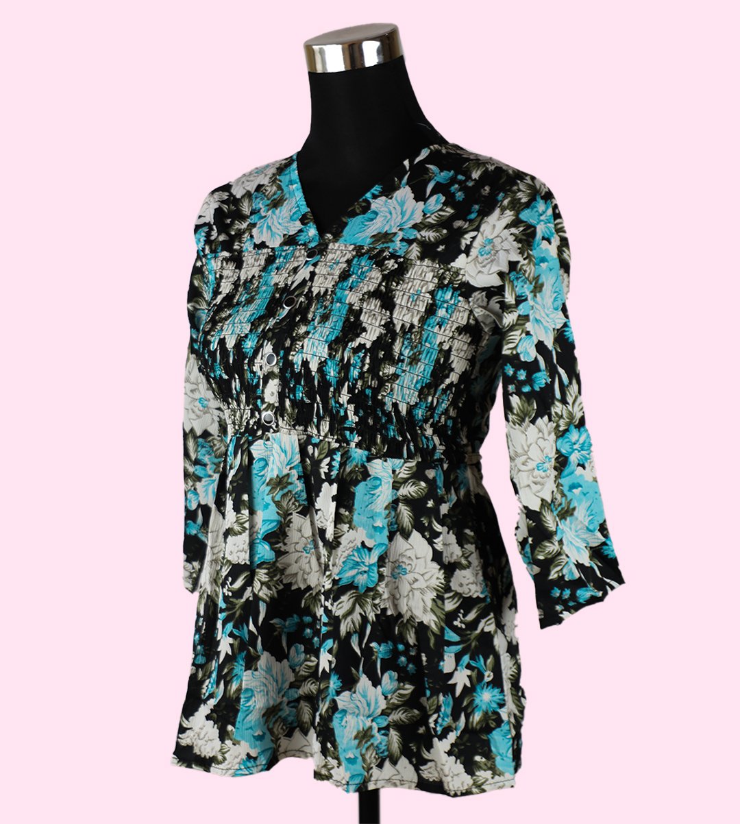 Elevate your fashion with our Chic Women's Floral V-Neck Top, showcasing a captivating combination of monochrome and blue in a mixed floral print. This top features a classic V-neck design and a regular fit, making it perfect for various occasions. Crafted from soft Rayon fabric, this top is both stylish and breathable, ensuring comfort throughout the day. The captivating mixed floral pattern adds a stunning and eye-catching dimension to your look.