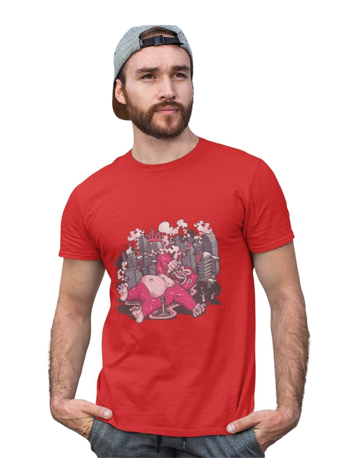 The Wrecker Red Round Neck Cotton Half Sleeved T-Shirt with Printed Graphics